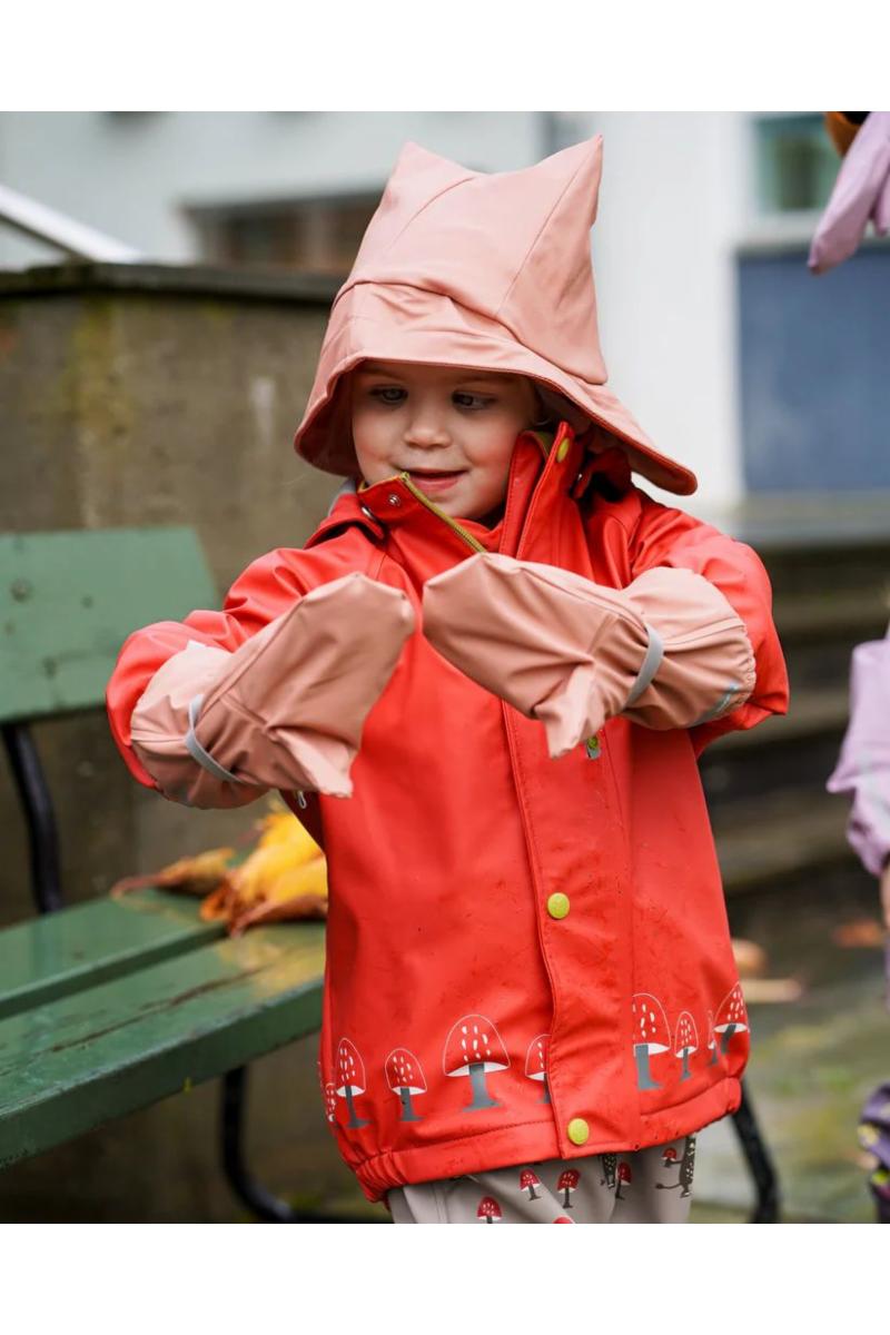 Å leke i vann er det morsomste som finnes, men fingrene kan fort bli veldig kalde når temperaturen er lav. Derfor anbefaler vi å bruke regnvotter. Kattnakkens regnvotter er i myk PU med fleecefôr, slik at man holder seg varm. Det er også navnefelt på vottene deres. De er lette å ta på, og man kan regulere strikken rundt slik at de sitter godt på. Hold små hender varme, selv om det øser og pøser ned.