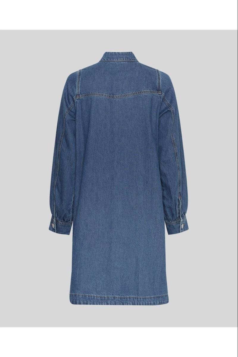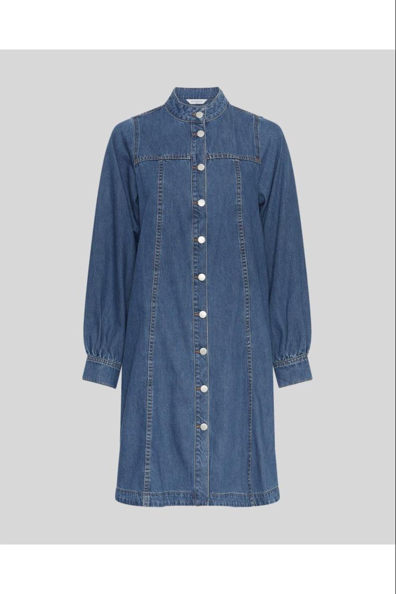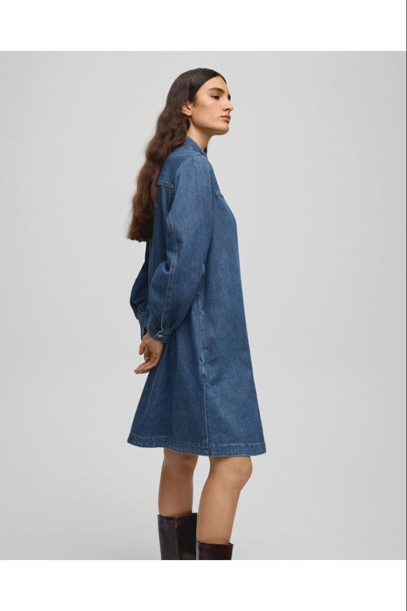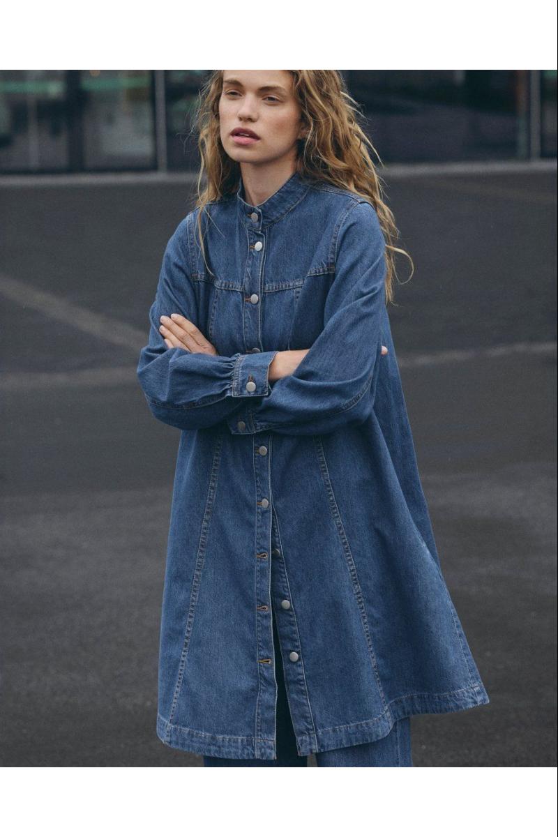 MSCHRylan Elena skjortekjolen er en moderne versjon av den klassiske skjortekjolen. Laget av 100% økologisk bomull, har den en løs A-linje passform, lange puffermsermer og en elegant mandarin-krage. Den komplette knappestolpen og diskrete sidelommer tilfører både funksjonalitet og en stilfull touch.