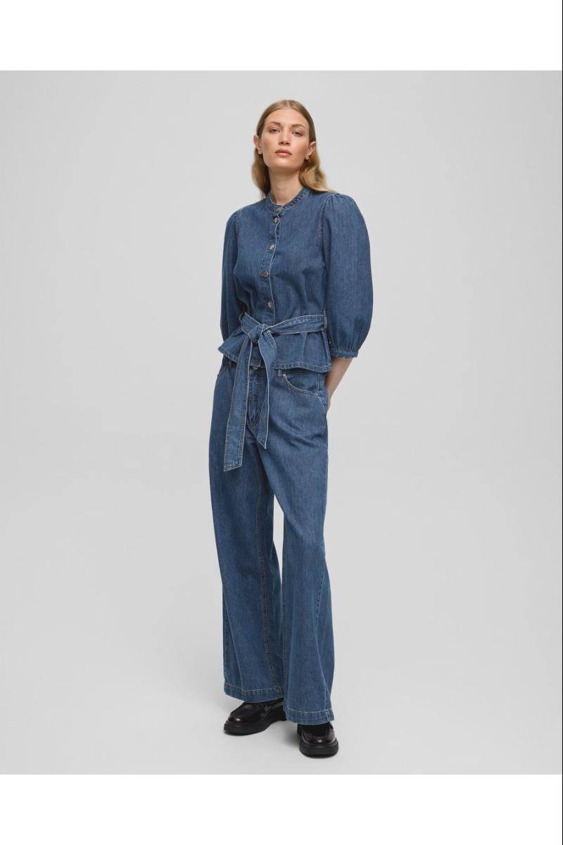 MSCHRylan Elena-buksene kombinerer en løs passform med moderne detaljer. Laget av 100% økologisk bomull, har disse jeansene vide ben og plisserte detaljer, som skaper et avslappet og stilfullt utseende. Den høye midjen og den myke denimkvaliteten gjør dem ideelle for både hverdags- og helgebruk.