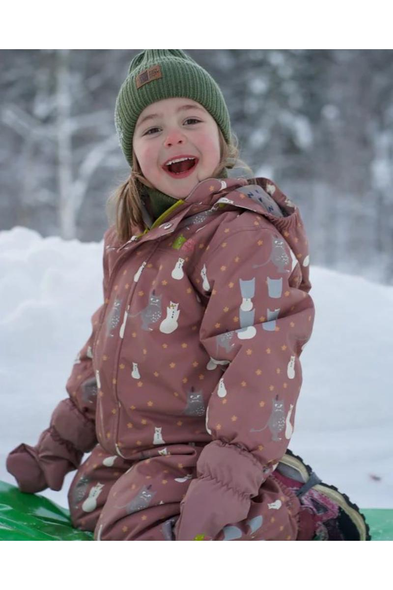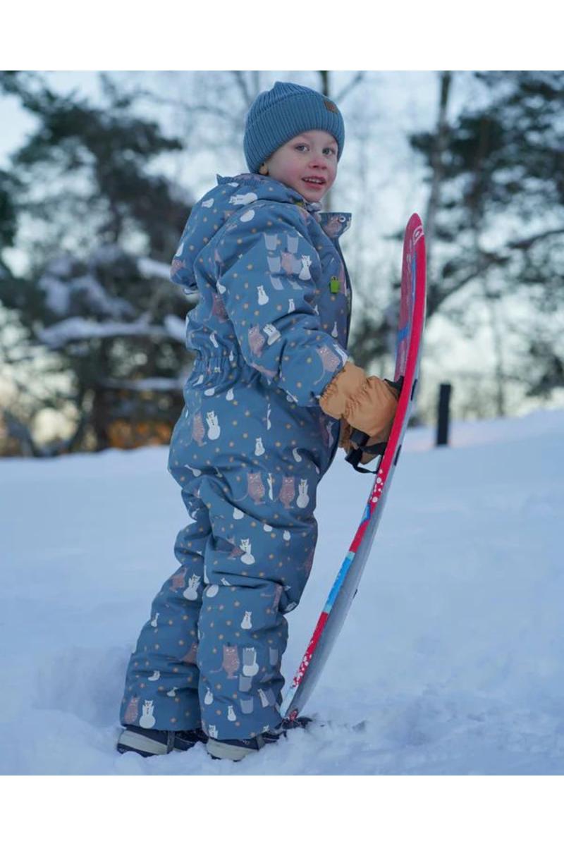 Parkdress Snø - kolleksjon «Tolvmeterskogen 2025». Laget for kalde dager i 100 % nylon som er slitesterk (80 000 sykluser Martindale) og pustande (minst 5000 g/m2/24h). Dressen har en vannsøyle på 12 000 og holder barna tørre selv i våt snø. Foret er av vatt og tørker fort om en snur den etter vask. Dressen er utstyrt med slitesterke fotstrikker, navnelapp, reflekser på ermer, bein og rygg og snøstopp på ermer. Dressen har sikkerhetshette som om er både avtagbar og regulerbar.