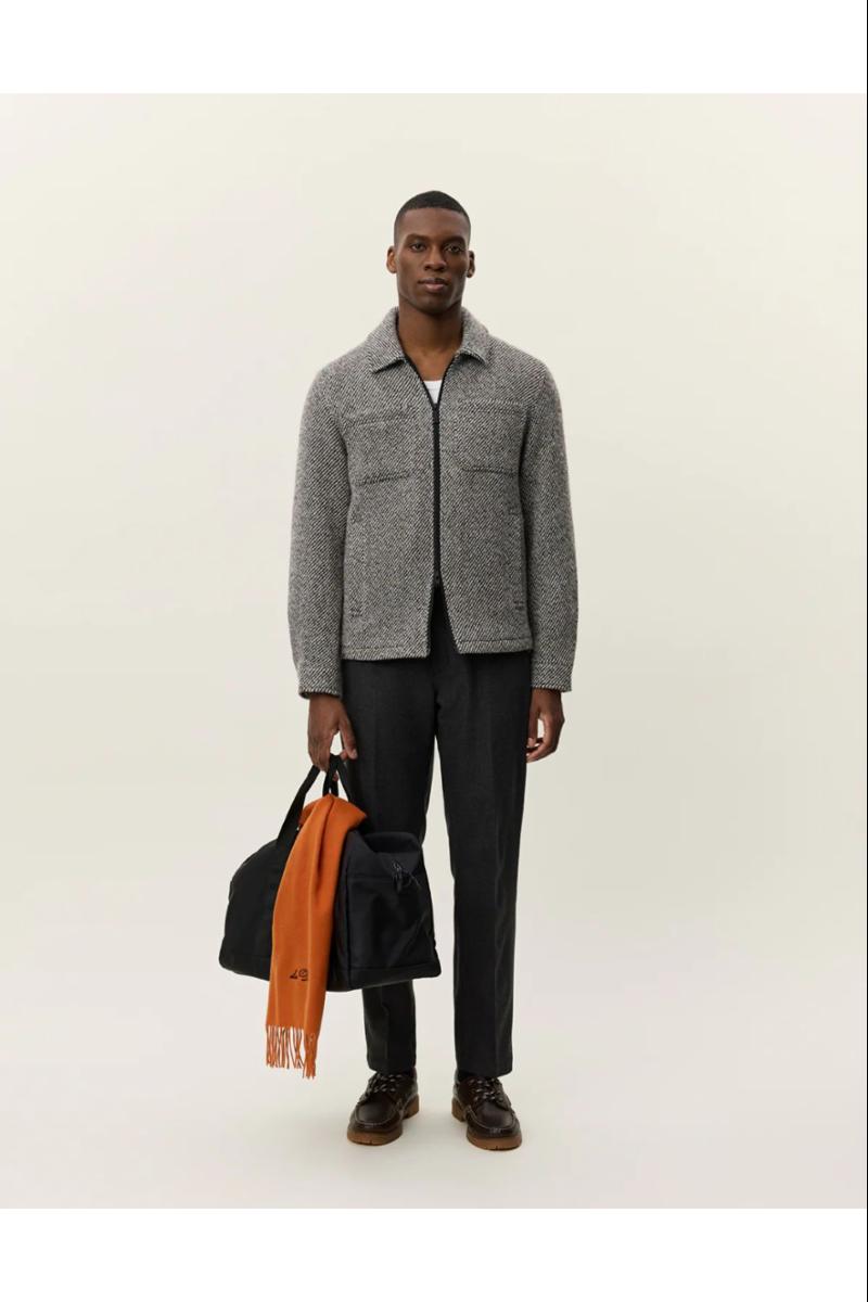 Arbeidstøyarv i raffinert stoff. Marseille er en overskjorte med glidelås, laget i strukturert twill av ullblanding, med arbeidsinspirerte lommer og clean finish.