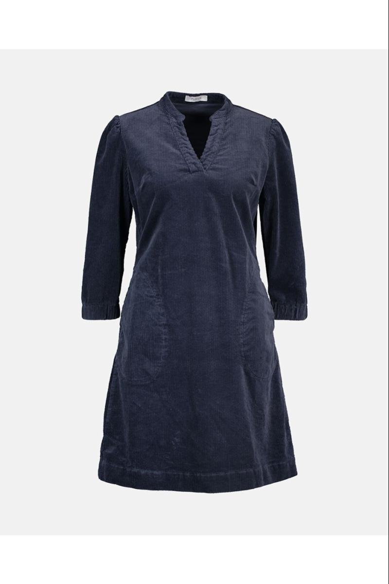 Denne kjolen i myk kordfløyel kombinerer komfort med en feminin silhuett. V-halsen gir et flatterende uttrykk, mens puffermer tilfører et subtilt romantisk preg. Halvlange ermer med litt bred strikk ytterst. Stikklommer i sidene gir en praktisk og avslappet følelse, perfekt for hverdagsbruk så vel som mer pyntede anledninger.