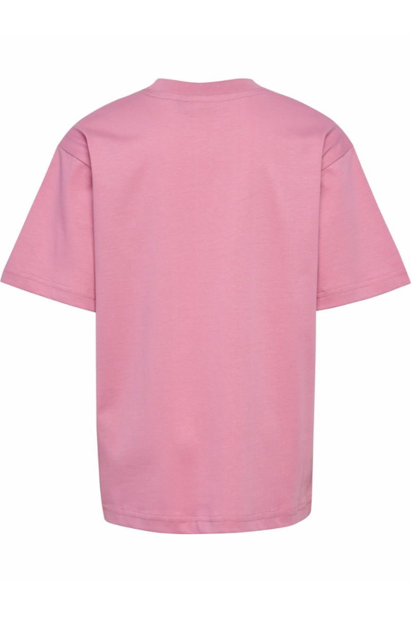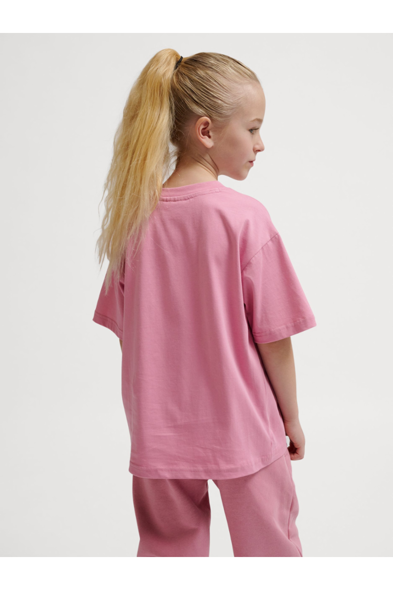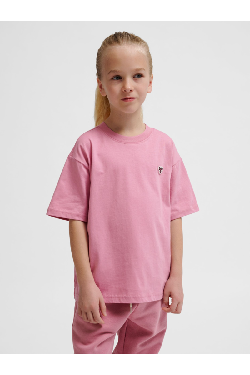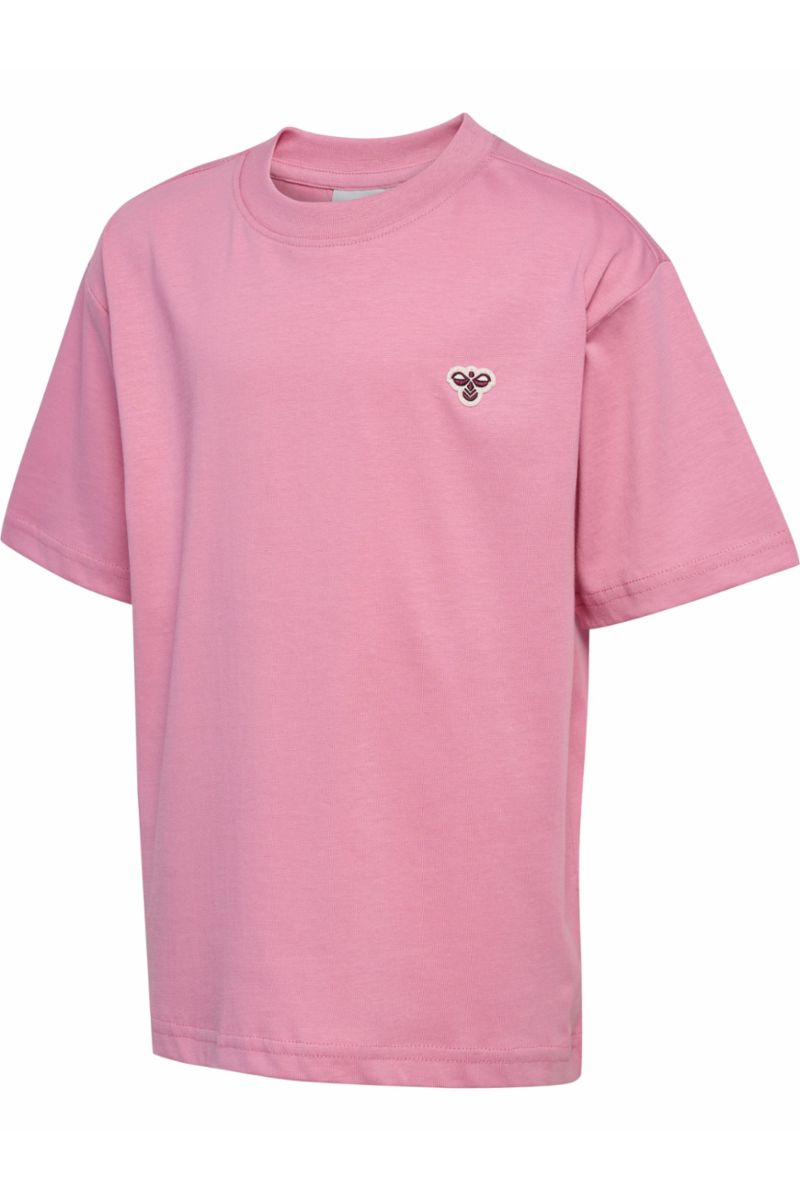hmlJR LOOSE T-SHIRT S/S BEE er fremstilt av myk, strikket jersey stoff. Den har en løs passform, korte ermer og et påsydd hummel-logo på brystet.