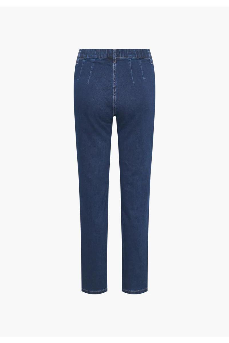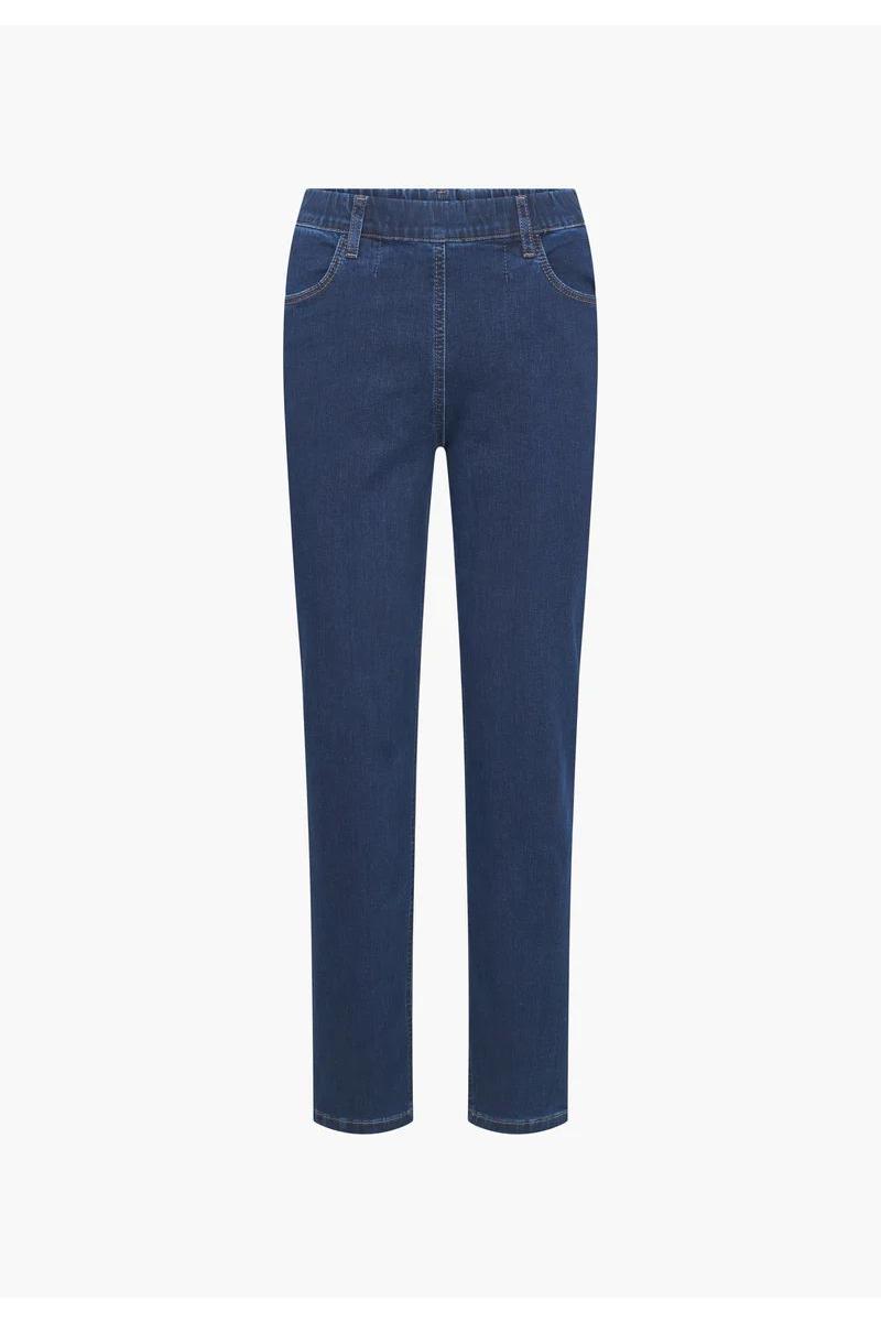 Kelly Regular i denim er for deg som ønsker klassiske damejeans med elastisk linning, forlommer og beltestropper. Kelly-modellene er en av LAURIEs bestselgere av god grunn. Det ukompliserte og enkle designet gjør disse buksene til essensielle grunnplagg i mange kvinners garderobe. Denne Kelly-modellen er stretch-jeans, perfekt for de som søker komfortable jeans for kvinner med former. Modellens elastiske materialblanding gir en myk følelse og god bevegelsesfrihet. Hvis du leter etter myke stretch-jeans, er denne Kelly det riktige valget. Modellen har en middels benlengde.