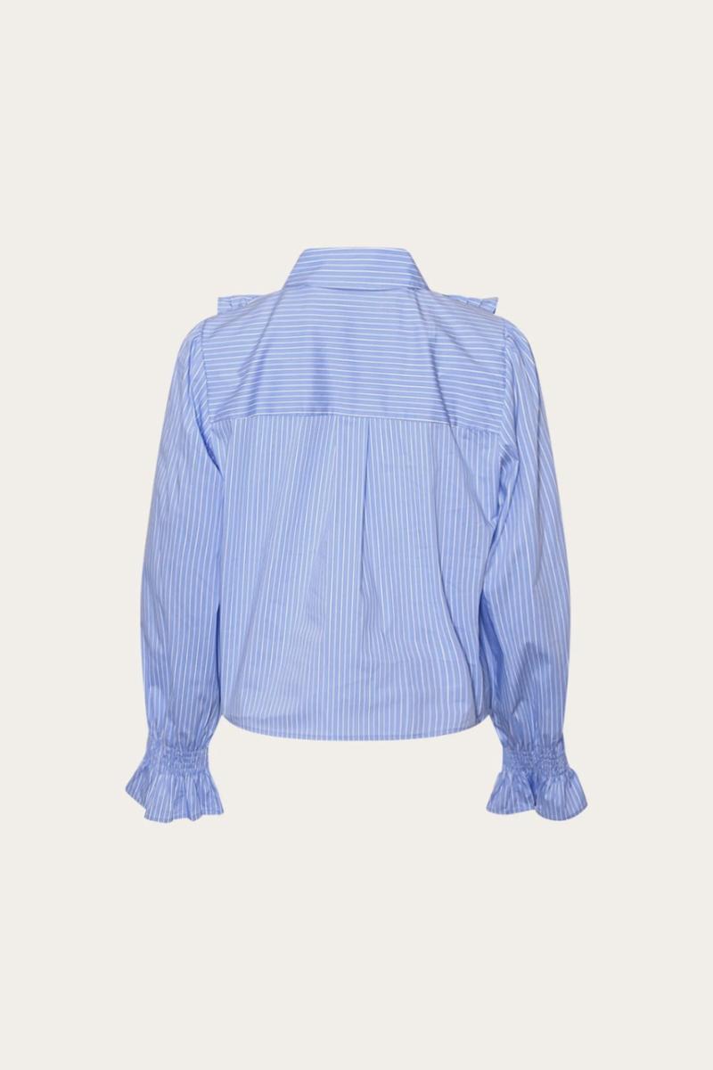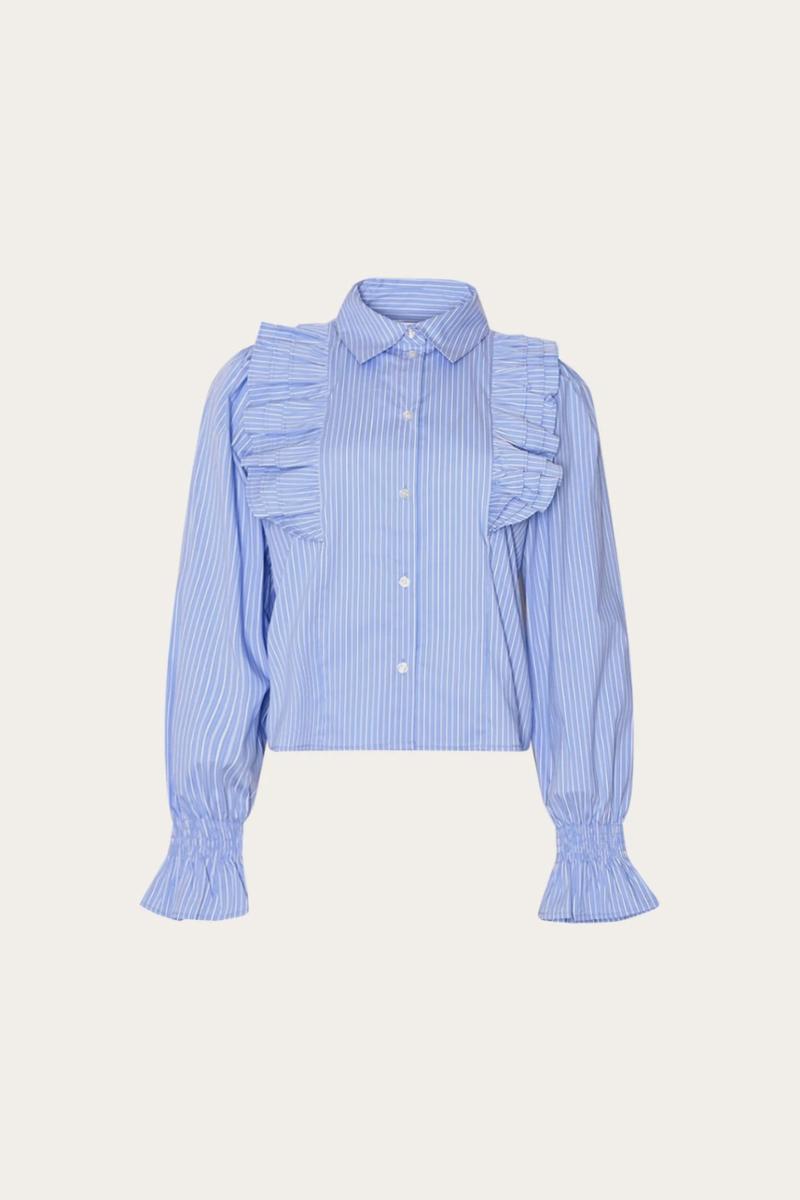 Lucina Blouse er en skjorte med vertikale striper og volangdetaljer på ermer og foran. Den har en løs passform med et feminint og enkelt uttrykk, som gjør den enkel å style og et must-have i basisgarderoben.