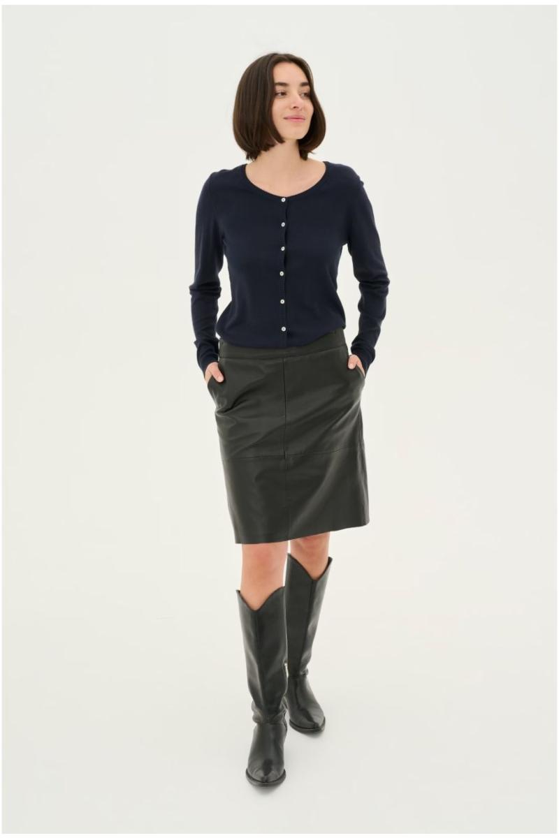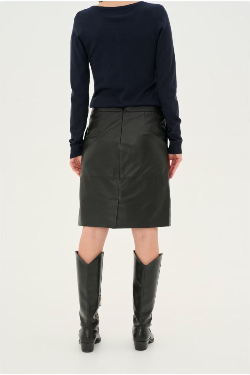 Dette A-formede skinnskjørtet har en flatterende, middels lengde og komfortabel passform. Rent liv og diskrete sømmer gir et tidløst og allsidig uttrykk.