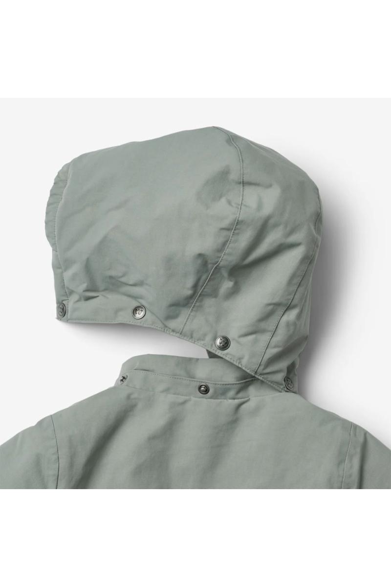- Skjult glidelås med hakebeskyttelse og plagg med trykknapper