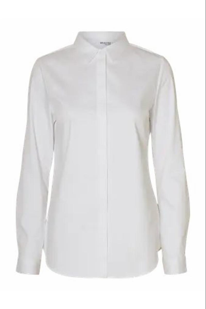 Denne tettsittende skjorten er et must i garderoben. Den er laget av minst 50% økologisk bomull og har slim fit som gjør den enkel å bruke under strikk eller blazer. Vi hadde stylet den med vide bukser og flate sko med spiss tå for en dag på kontoret.