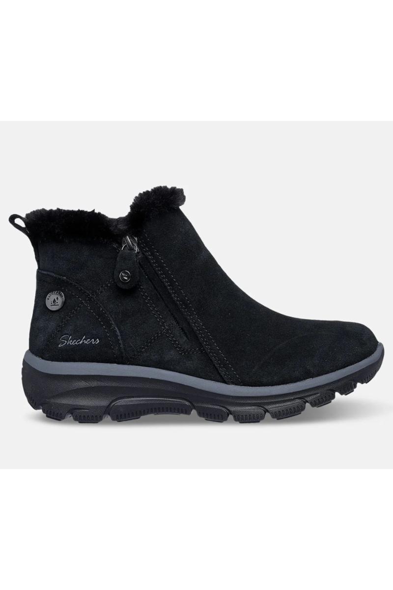 Hold deg varm hele den kalde sesongen med Skechers Relaxed Fit®: Easy Going - High Zip 2. Denne vanntette ankelstøvelen har en overdel av semsket skinn med fuskepelsfôr, glidelåslukking på siden og en Skechers Air-Cooled Memory Foam® polstret innersåle.