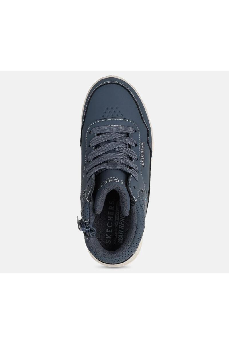 Sporty stil møter polstret komfort i Skechers Street™ Waterproof: UNO Lite – Aqua Ave. Denne vanntette sneaker-støvelen har en syntetisk overdel med preget krage, snøring foran og vår signatur Skechers Air-Cooled Memory Foam®-innersåle for støtte.