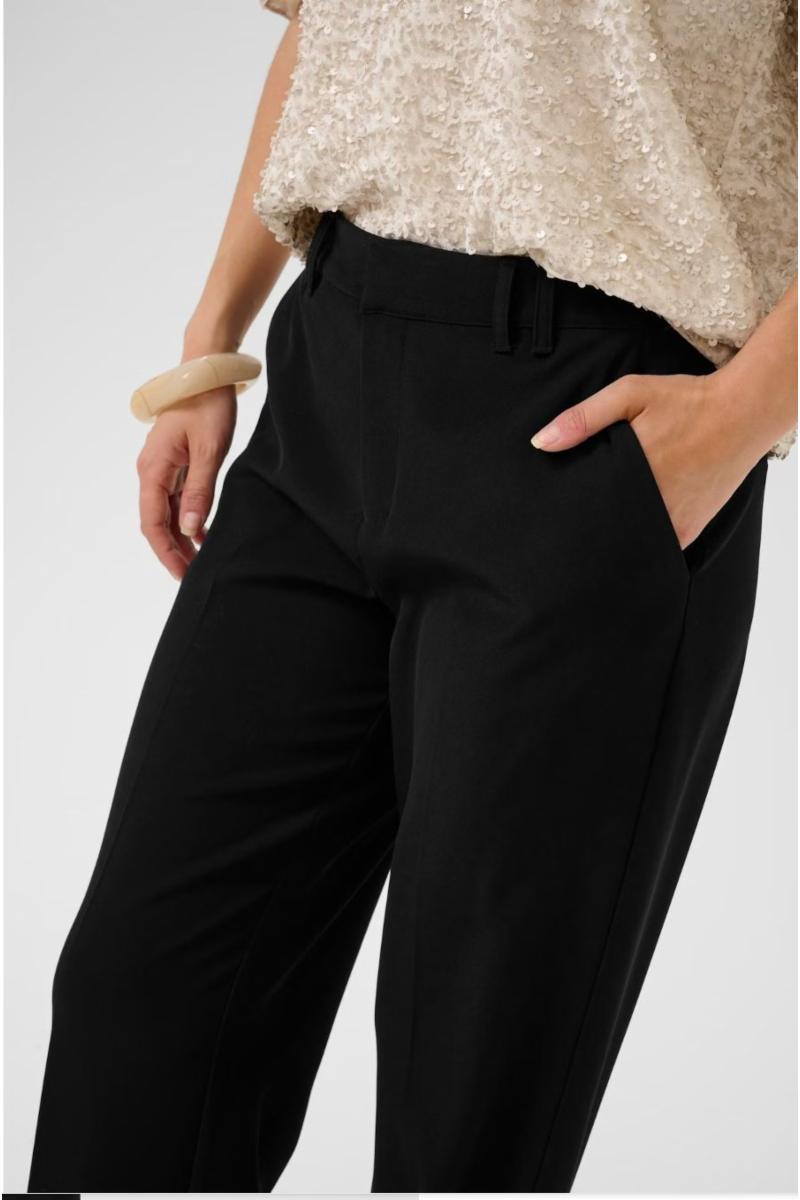Damebukse med rett passform, klassisk linning og beltehemper. Pressede legg gir et raffinert uttrykk og komfort for alle anledninger.