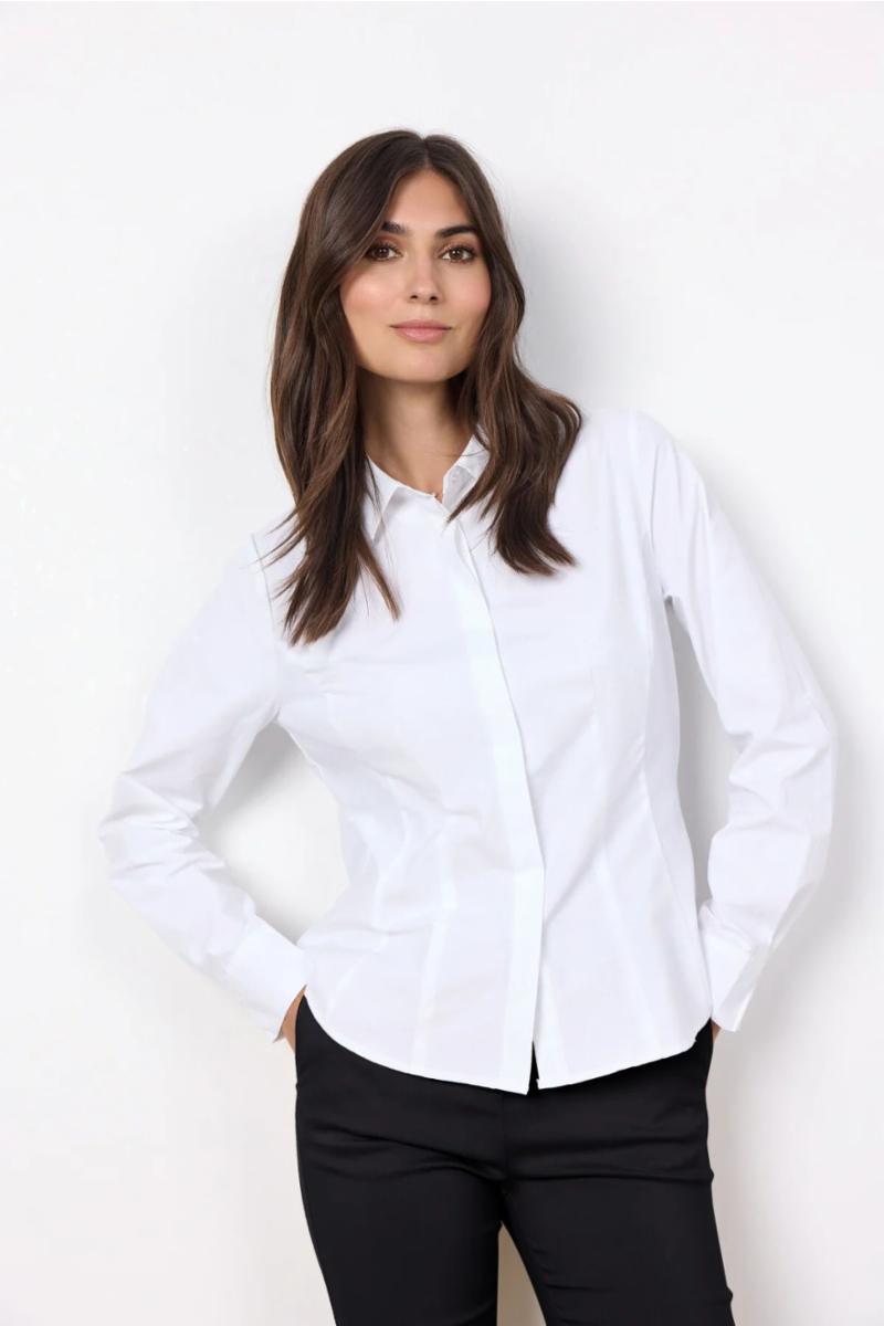 SC-Netti 6 er en klassisk skjorte i en kvalitet av resirkulert polyester og økologisk bomull. Den har en tilpasset passform, en klassisk krage og en skjult knappelukking. Denne feminine skjorten passer perfekt sammen med en blazer og et par dressbukser for et sofistikert utseende.