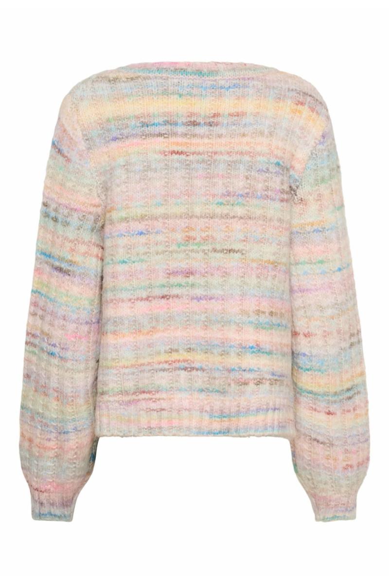 Denne damegenseren har V-utringning, avslappet passform og ribbestrikkede mansjetter. Behagelig for hverdagsbruk og lag på lag antrekk.