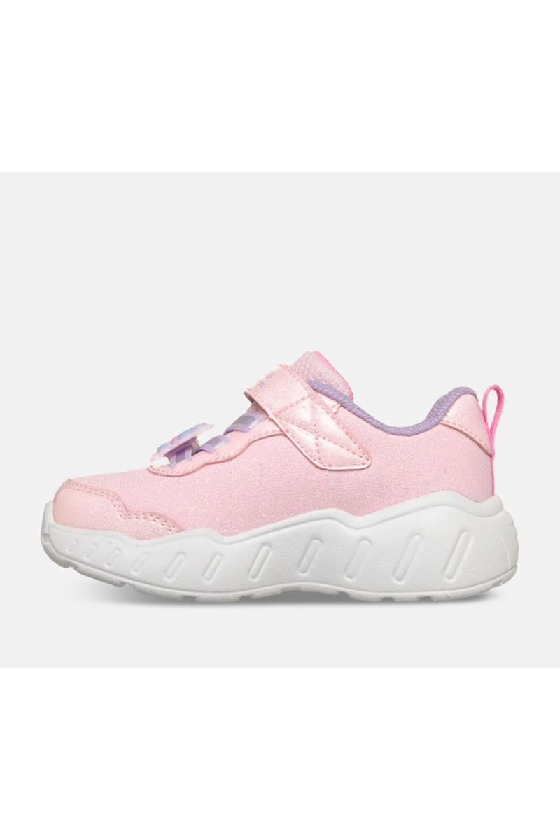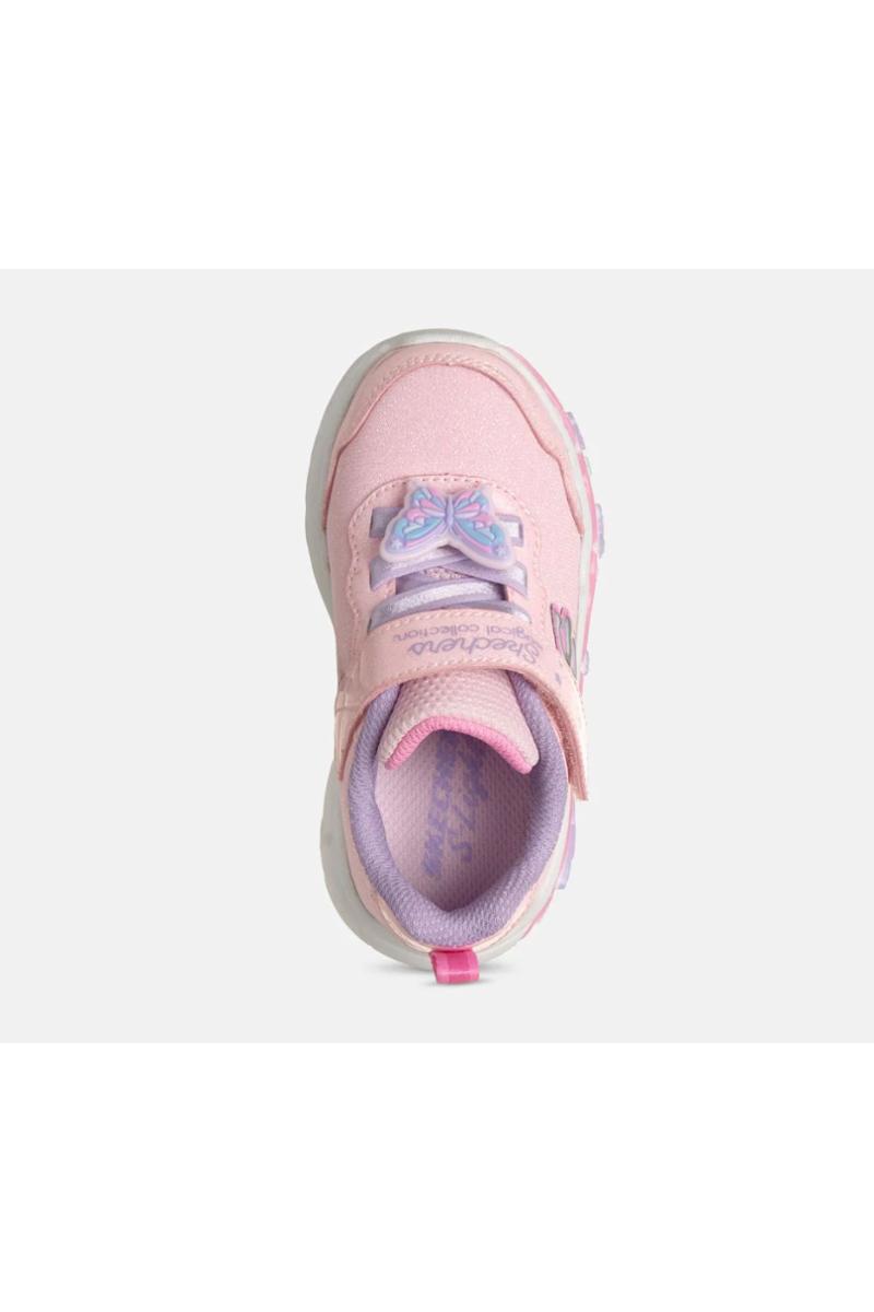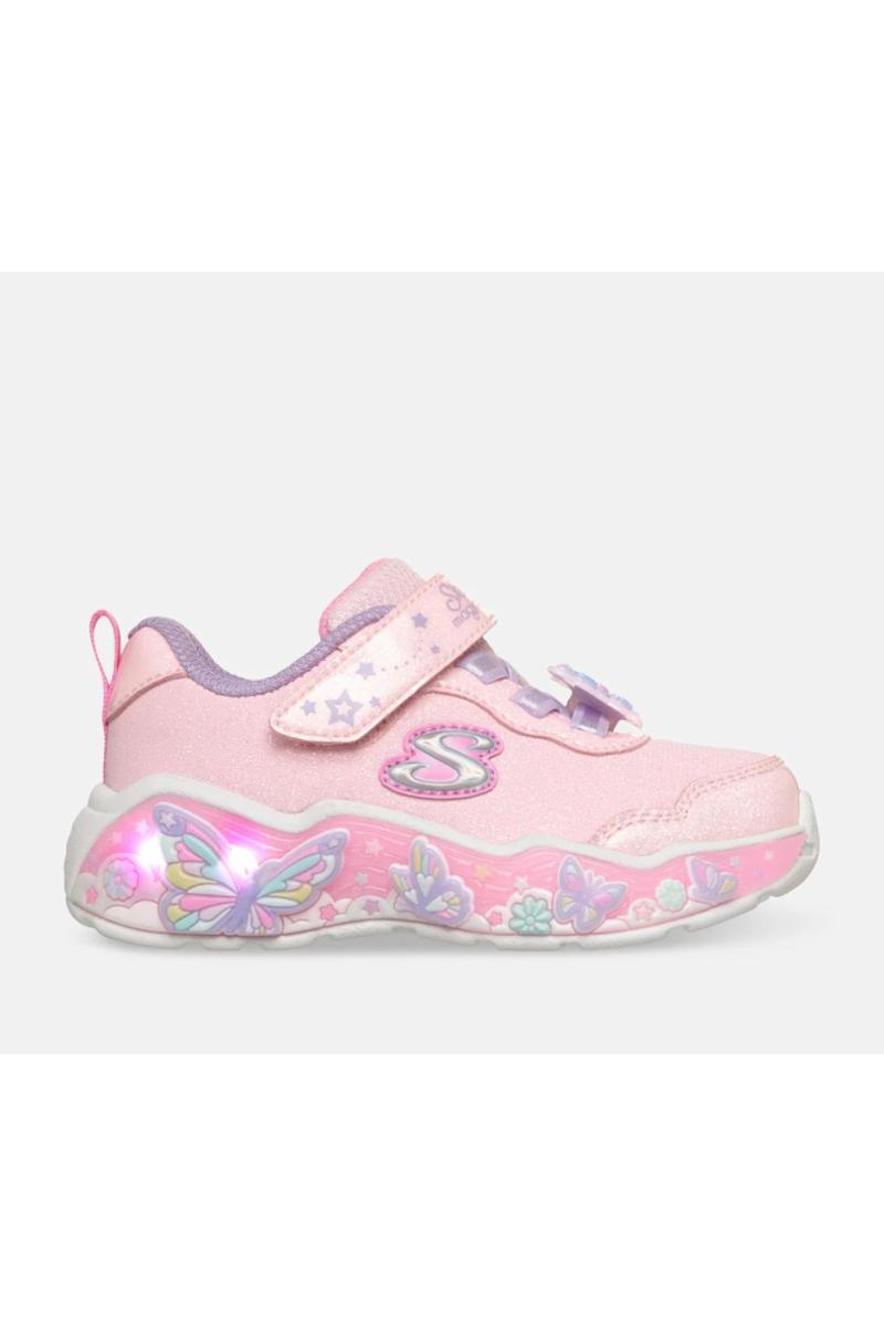 Gjør dagen deres litt mer magisk med Skechers S-Lights: Lil Butterfly Bliss. Denne eventyrlige sneakeren fra Magical Collection® lyser opp med sommerfuglglede og har en glitrende overdel i mesh og syntetmateriale, sommerfuglformet skolissestopper, justerbar borrelås over vristen, faste elastiske lisser og en mellomsåle med lysende sommerfugldetaljer.