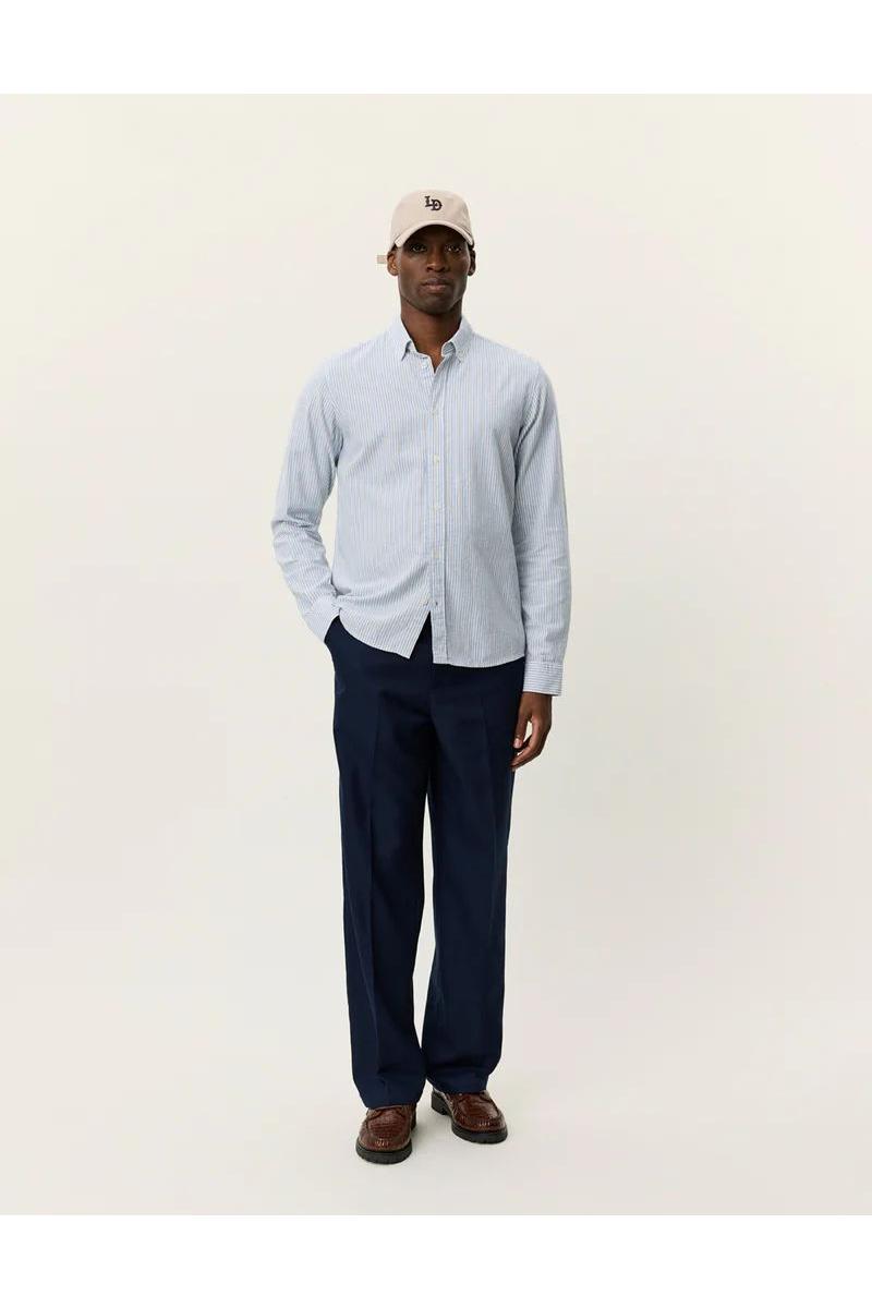 En sommerlig variant av Konrad-serien vår. Denne utgaven kommer i frisk bomull/linblanding med klassisk stripemønster og et diskret tonalt brystbroderi.