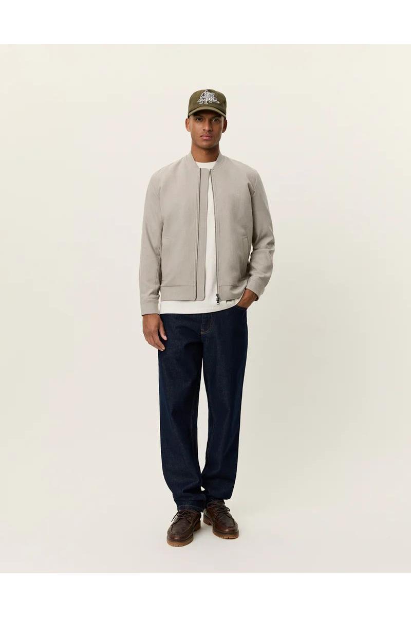 En minimalistisk bomberjakke laget i stretchy, resirkulert poly-viskoseblanding. Utformet med raffinert Catalina-krage, glatt glidelåslukking og mansjetter med knapper – gir en skarp og moderne look.