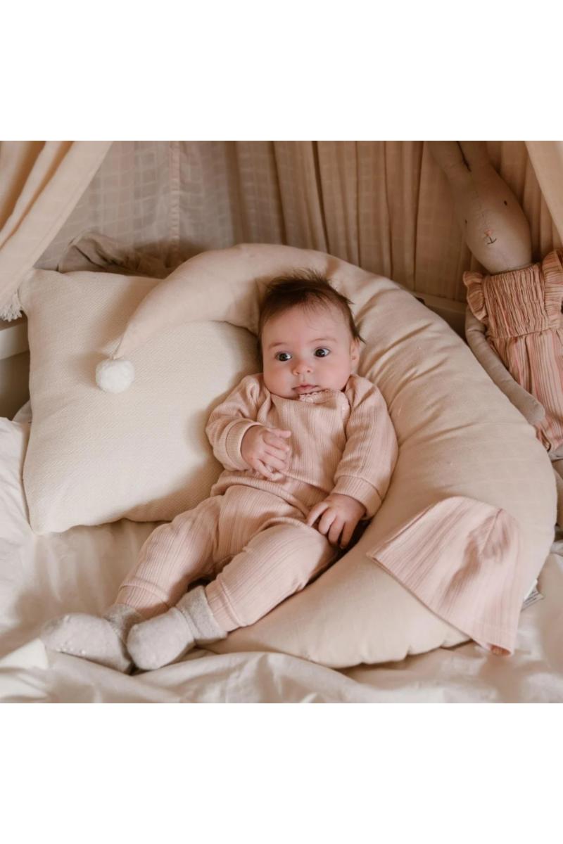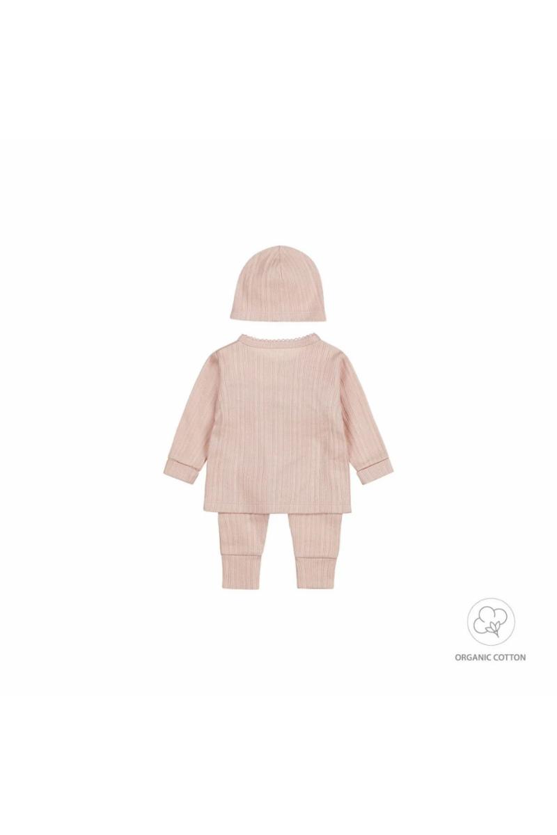 Kjærlig laget for de små, dette settet fra Dirkje er laget av myk økologisk bomull. Sett for jenter i myk rosa farge består av en langermet topp, bukse og matchende lue, og har en fin tekstur i stoffet. Toppen har lange ermer med brett, slik at den kan brukes ekstra lenge. Skjorten har en fin overlappingsløsning med trykknapper, som er praktisk når man kler på og tar av klær. Buksene har oppbrett på beina og en ekstra bred midje for en ekstra behagelig passform. Selvfølgelig kan du også enkelt vende midjen opp ned. Den matchende luen holder den lille fin og varm. Babyklær i økologisk bomull er det ideelle valget for foreldre som vil det beste for sine babyer. Laget av økologisk dyrket bomull er disse klærne myke, komfortable og trygge for babyens sensitive hud. I tillegg bidrar de til en sunnere planet gjennom bærekraftige og miljøvennlige dyrkingsmetoder. Velg økologisk bomull for å skjemme bort babyen din og beskytte verden.