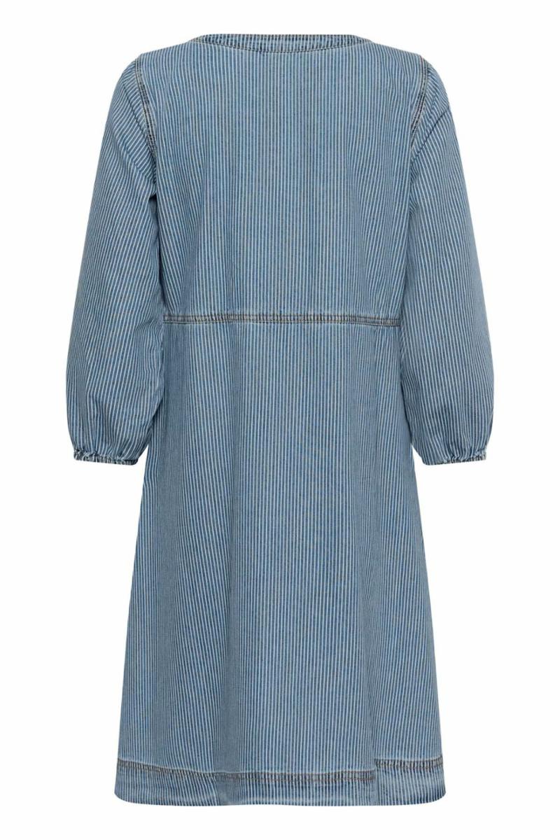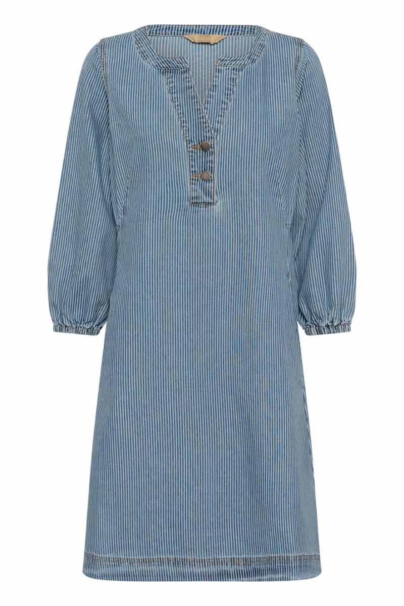Tunika-kjole med ledig passform, flatterende V-hals, knappestolpe og komfortable 3/4-ermer med strikk. Perfekt for hverdagsbruk.