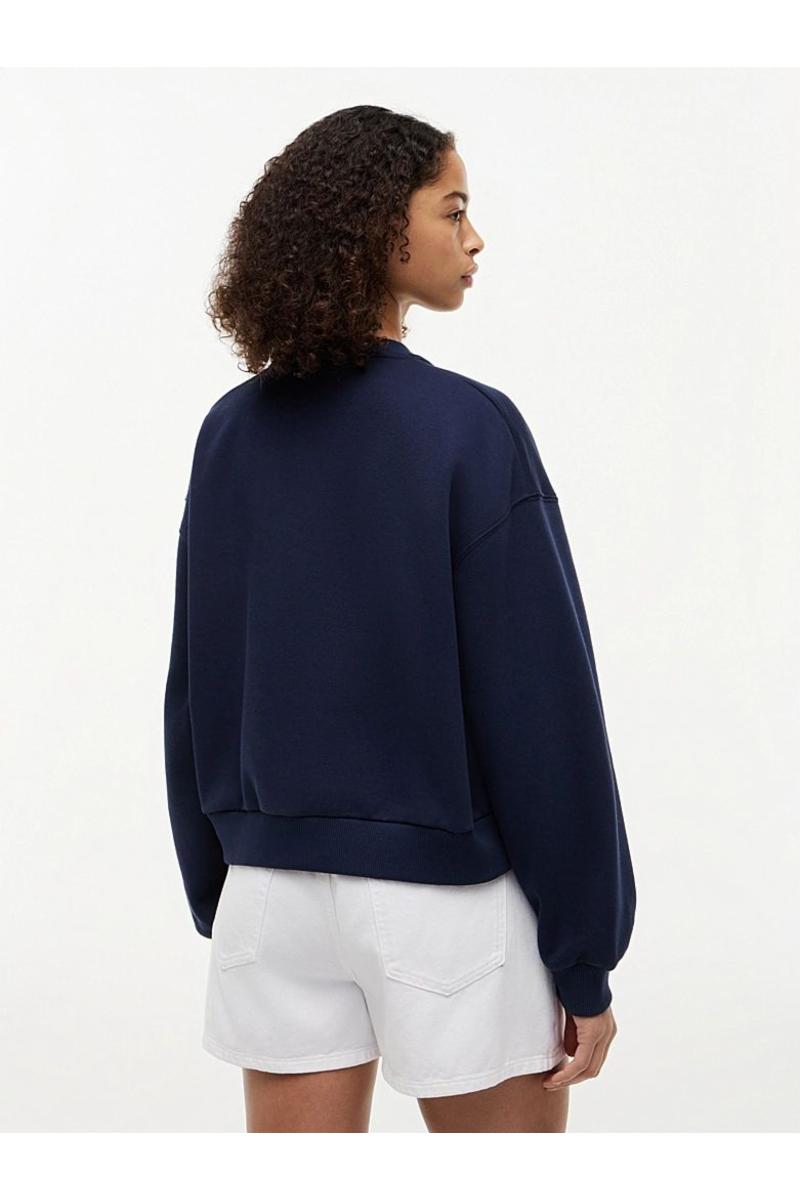 Omfavn en avslappet stil i denne genseren, laget i en moderne løs passform av bomullsblandet stretchfleece for en koselig følelse.