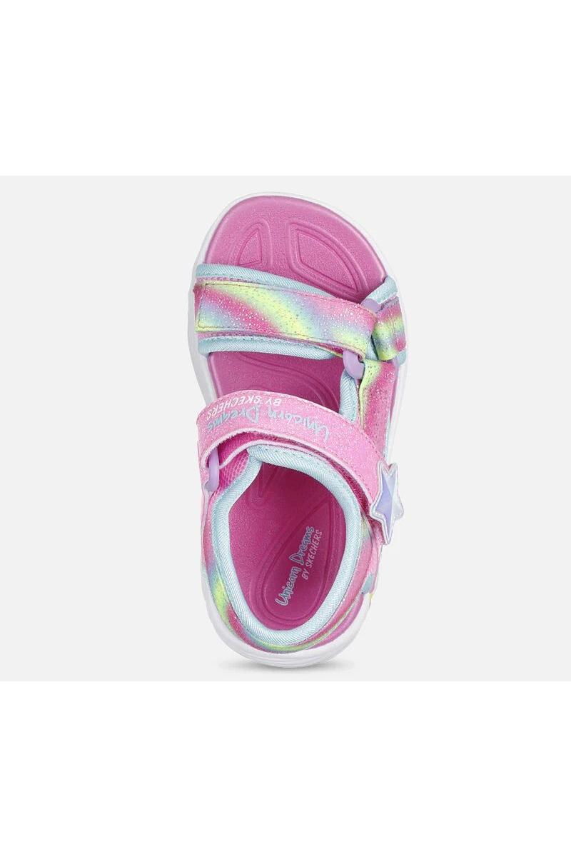 Gjør minstens skritt litt ekstra magiske, velg en enhjørning som blinker på Skechers Unicorn Dreams Sandal – Dreamy Unicorns. Skoens design lyser opp og har en vevd stropp som skimrer på overdelen med Skechers Adaptive Closure, og en bearbeidet mellomsåle inspirert av enhjørninger.