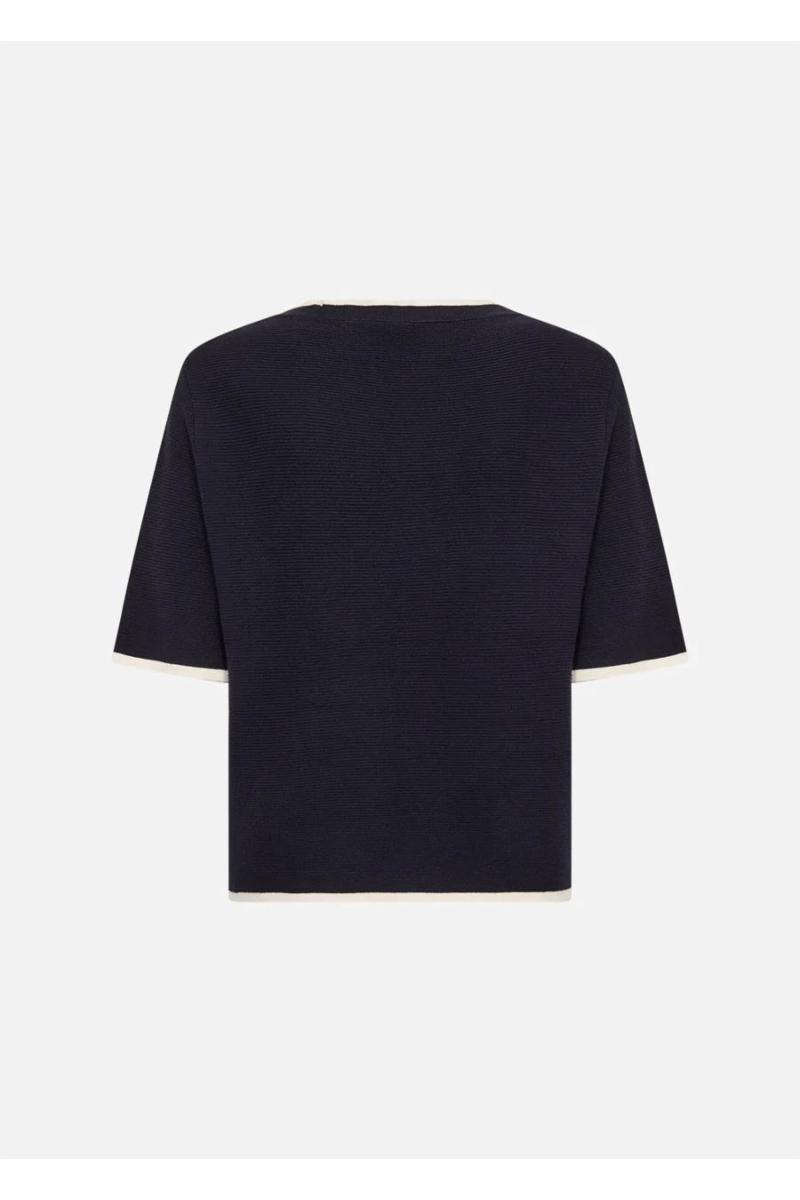 SC-DOLLIE 793 er en genser laget av 75% viskose og 25% nylon. Den har en rund hals med kontrastdetaljer og korte ermer, som tilfører et snev av eleganse. Kombiner den med skreddersydde bukser eller et stilig skjørt for et elegant utseende.