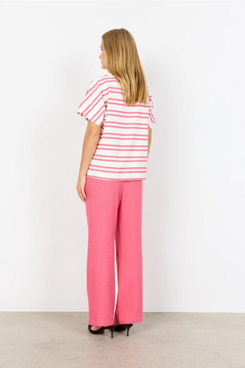 SC-BARNI 50 er en T-skjorte laget av 48 % modal, 48 % polyester og 4 % elastan. Den har en klassisk rund hals, korte ermer og et elegant stripemønster. Style den med jeans eller shorts for et kult, avslappet utseende.