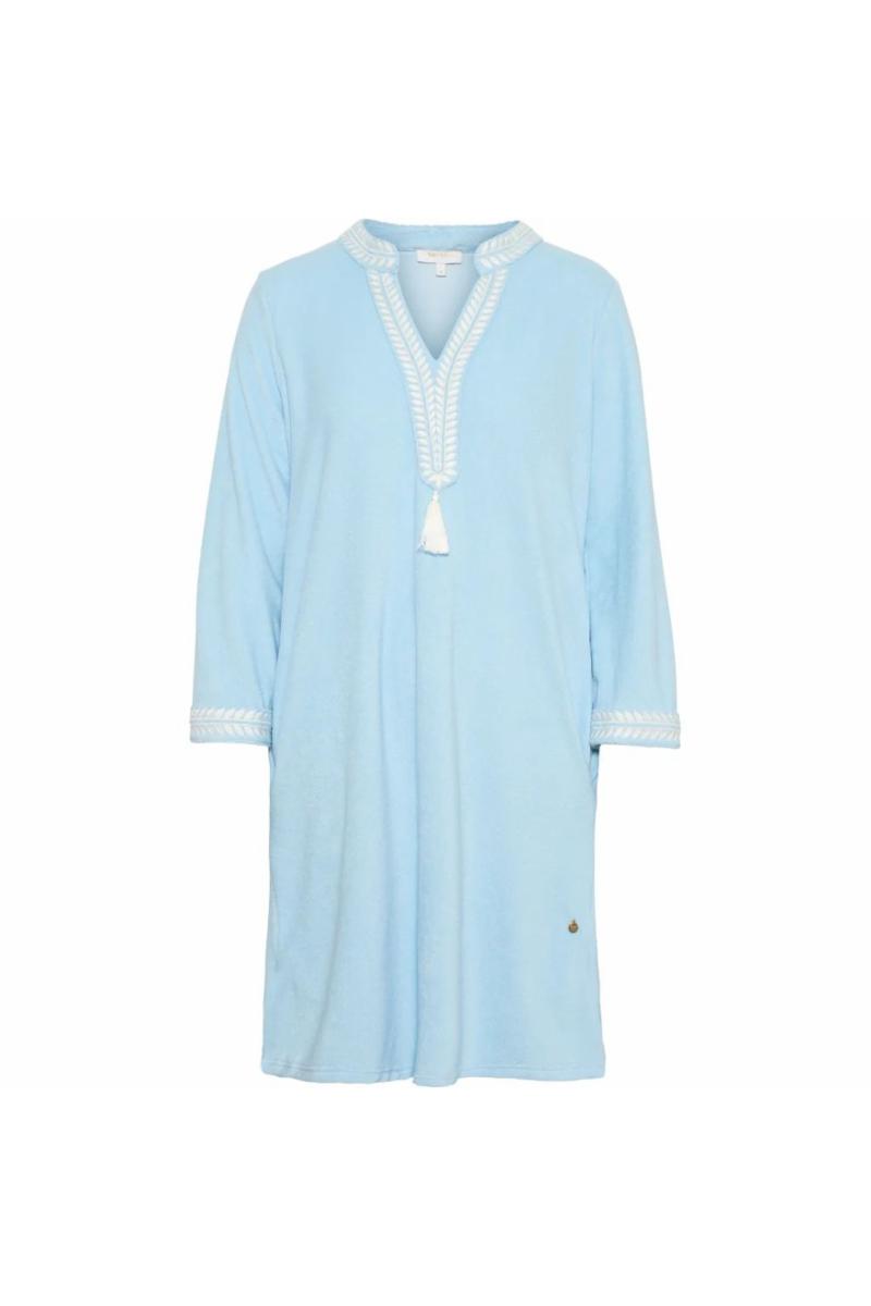 Endelig er Kaftan Dress i frotté fra RAH OSLO tilbake – en komfortabel favoritt med gjennomførte detaljer. Kjolen har en rett fasong med v-hals og dekorative broderinger, samt matchende broderte detaljer nederst på ermene. Praktiske sidelommer og splitter i sidene gir både funksjon og bevegelse.