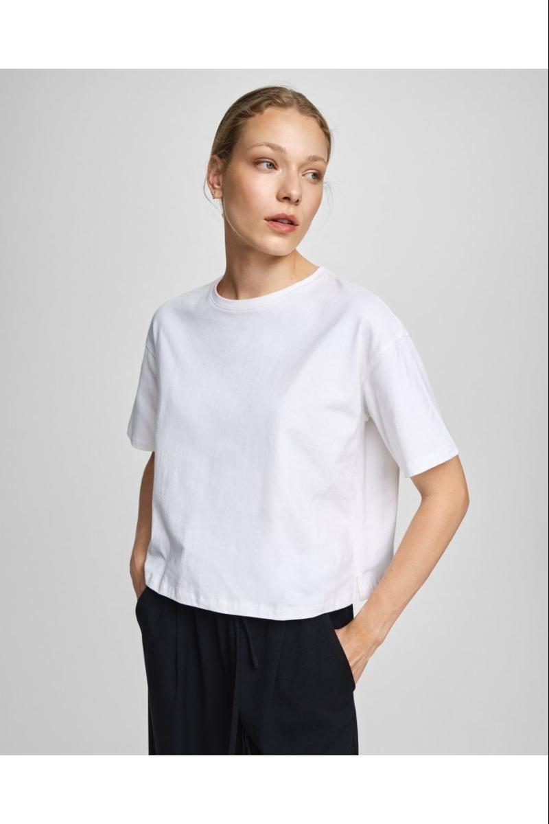 En moderne essens med uanstrengt kant. MSCHLeana Tee har en boksformet silhuett med senkede skuldre og en noe cropped lengde, som gir en avslappet men samtidig hevet versjon av den klassiske t-skjorten. Laget av myk bomull, er den perfekt for hverdagsstil – enten den brukes under en blazer eller sammen med høytlivsbukser. Den runde halsen og den enkle finishen gjør den til en alsidig basisplagg i enhver garderobe.