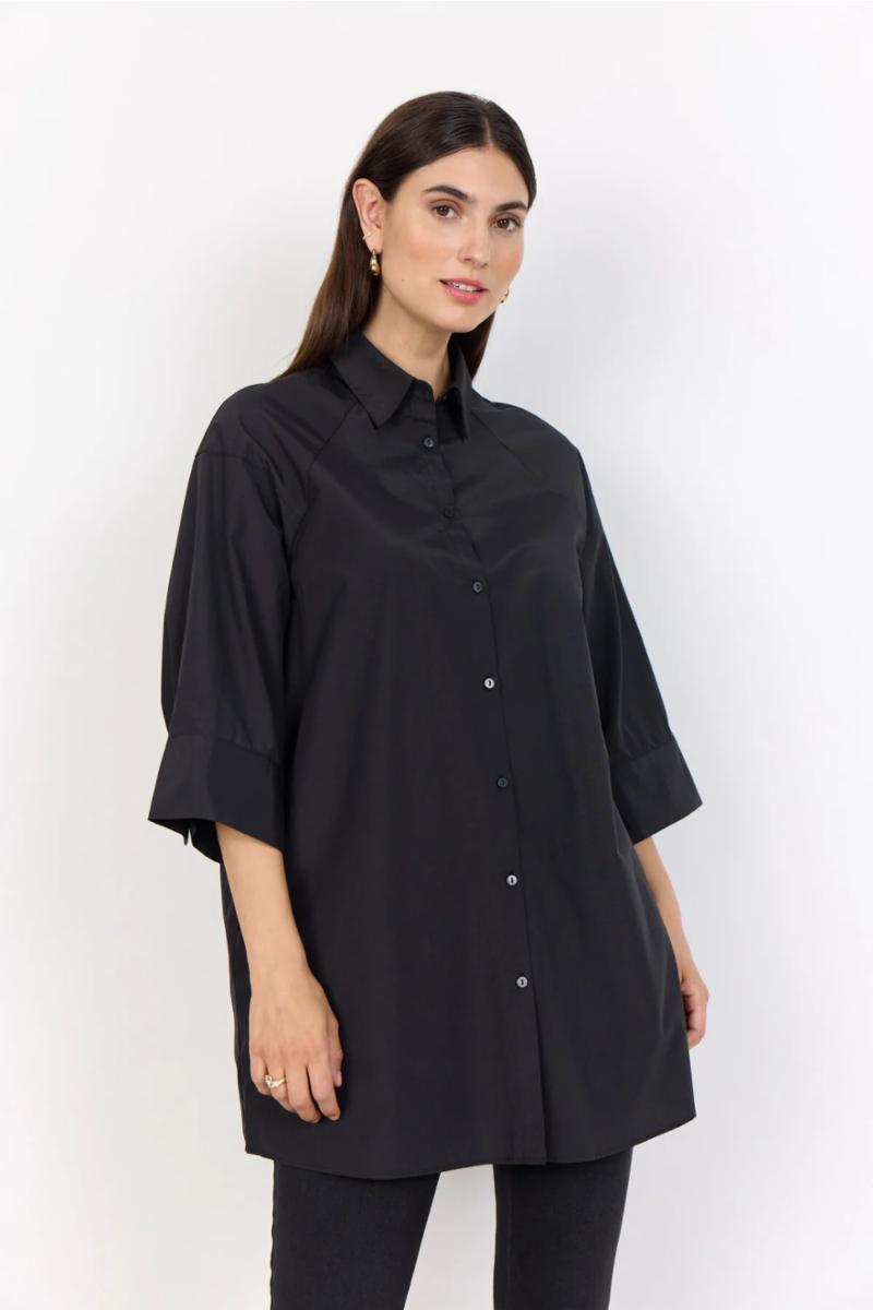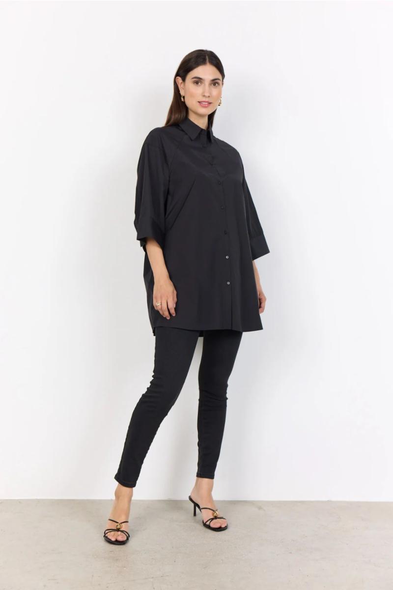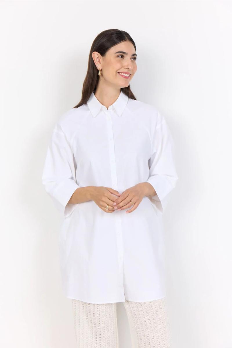 SC-NETTI 105 er en tunika laget av 53% resirkulert polyester og 47% økologisk bomull. Tunikaen har en klassisk krage, knappelukking, 3/4-ermene og en rett kant. Kombiner den med leggings eller bruk den som en kjole for et tilpasningsdyktig utseende.