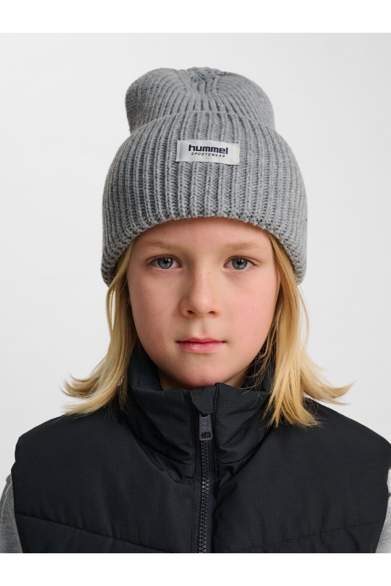 hmlJR HEAVY RIB KNIT BEANIE har et sydd hummel-logo på fronten og tilbyr en vanlig passform for behagelig bruk.