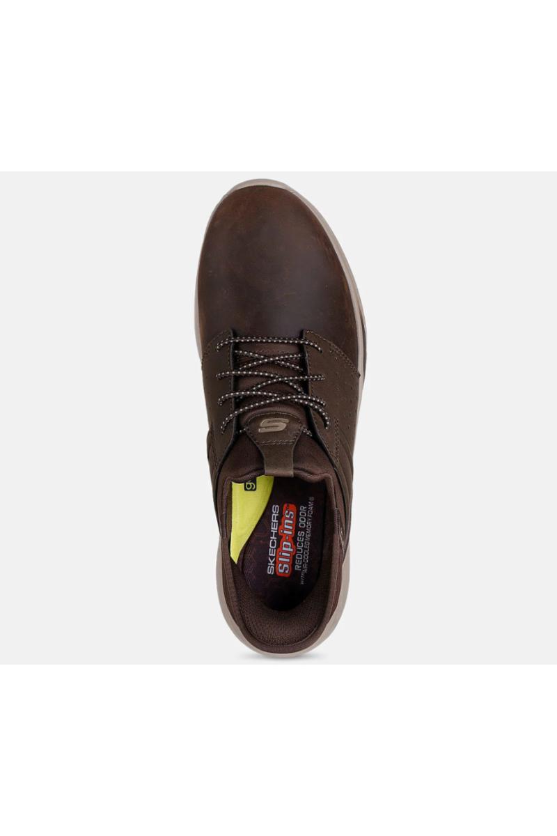 Elegant atletisk stil møter signaturkomfort i Skechers Slip-ins: Relaxed Fit: Slade - Zachary. Designet med vår eksklusive Heel Pillow har denne stretch-snøreskoen en overdel i lær og syntetisk materiale, en kullinfundert Skechers Air-Cooled Memory Foam-innersåle og Skechers Goga Mat Arch polstring for ekstra støtte.