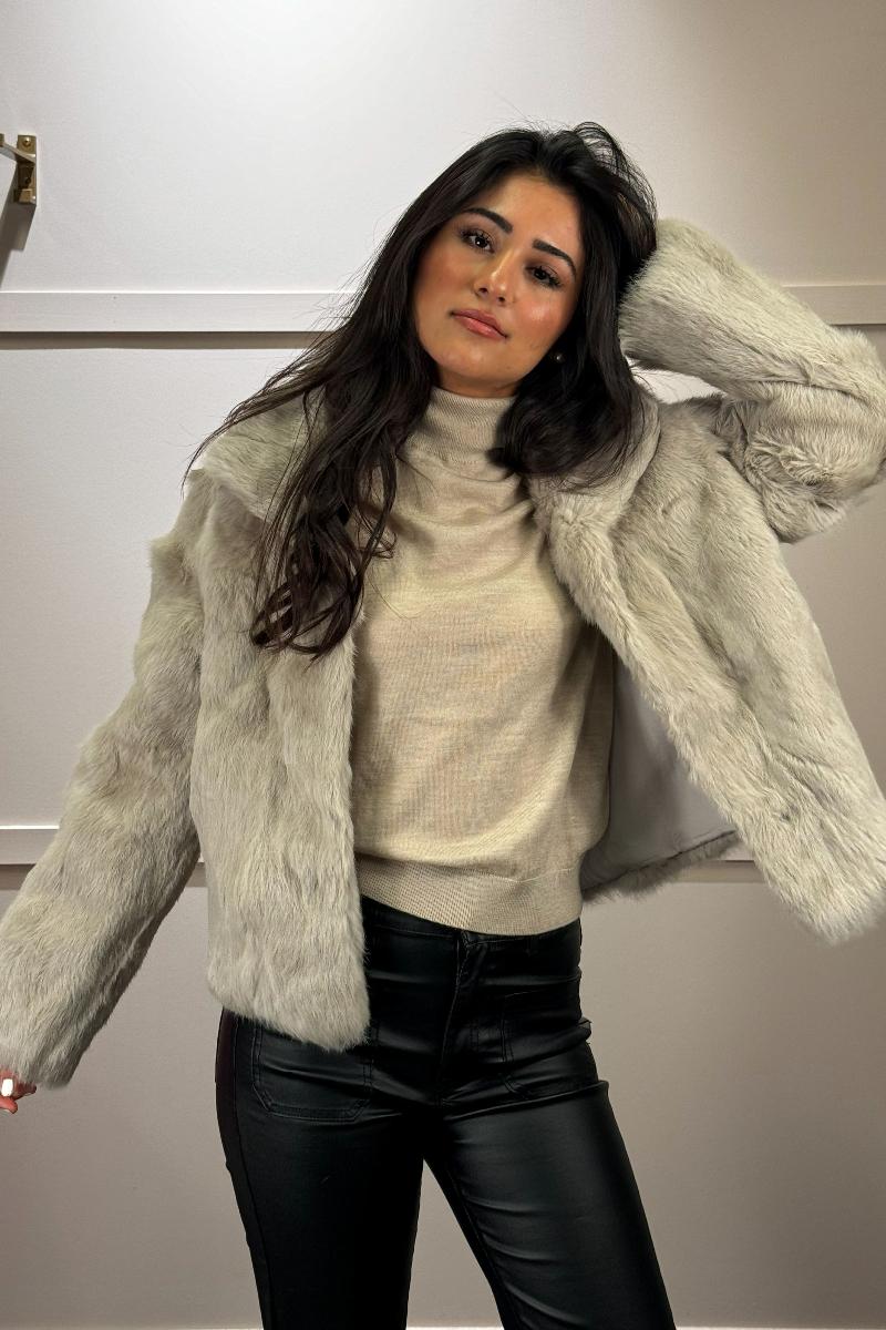 Denne vakre pelsjakken fra AneMone tilfører garderoben din et elegant og eksklusivt uttrykk. Den passer like godt til hverdags som til fest, og er perfekt å bruke over en kjole for et raffinert antrekk. Glam Jakken er laget av ekte kaninpels, noe som gjør den ekstra myk, varm og behagelig å ha på.