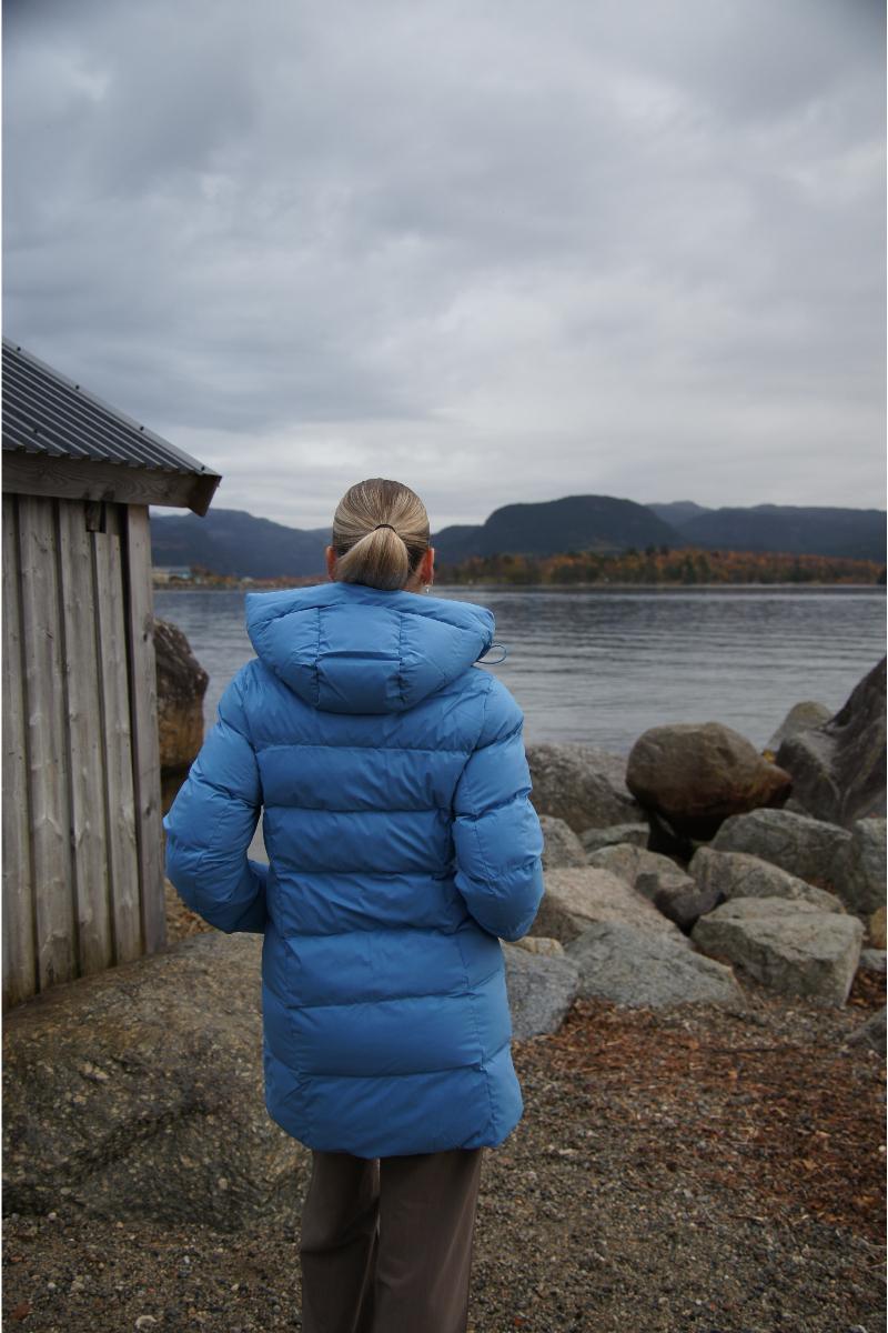 Rina er en tykk, lett og varm teknisk boblejakke i figursydd fasong. Den er lettvektig med varmeisolasjon. Jakken har vannsøyle opp til 10000 mm og er vindtett. Jakken har tykk og god hette og et belte som knytes i livet. Jakken har zipper i front, zipper på lommene og tapede sømmer. Forigen er er laget i Sorona som er en delvis plantebasert polymer. Den har høy slitestyrke, er smussmotstandig, ekstra myk og lett.
