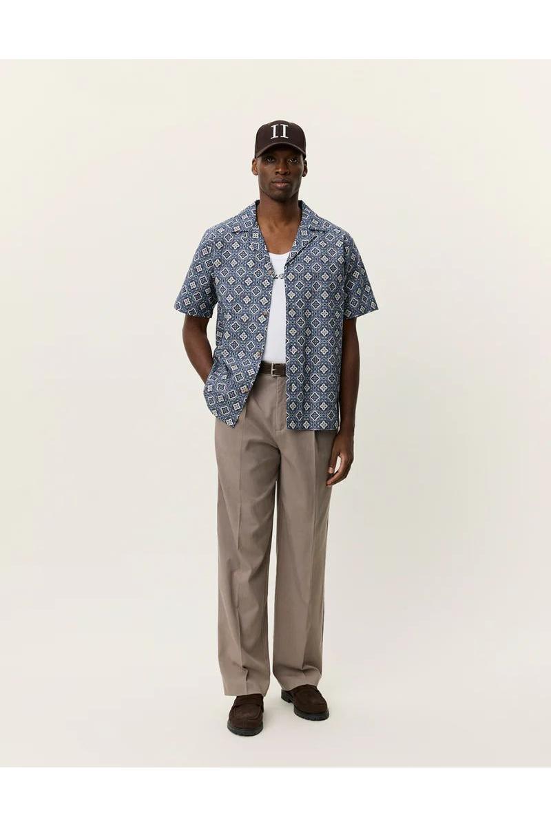 Lightweight kortermet skjorte i strukturert bomull, med heldekkende arabesk-inspirert mønster. Avsluttet med avslappet drapering og ren, åpen krage.