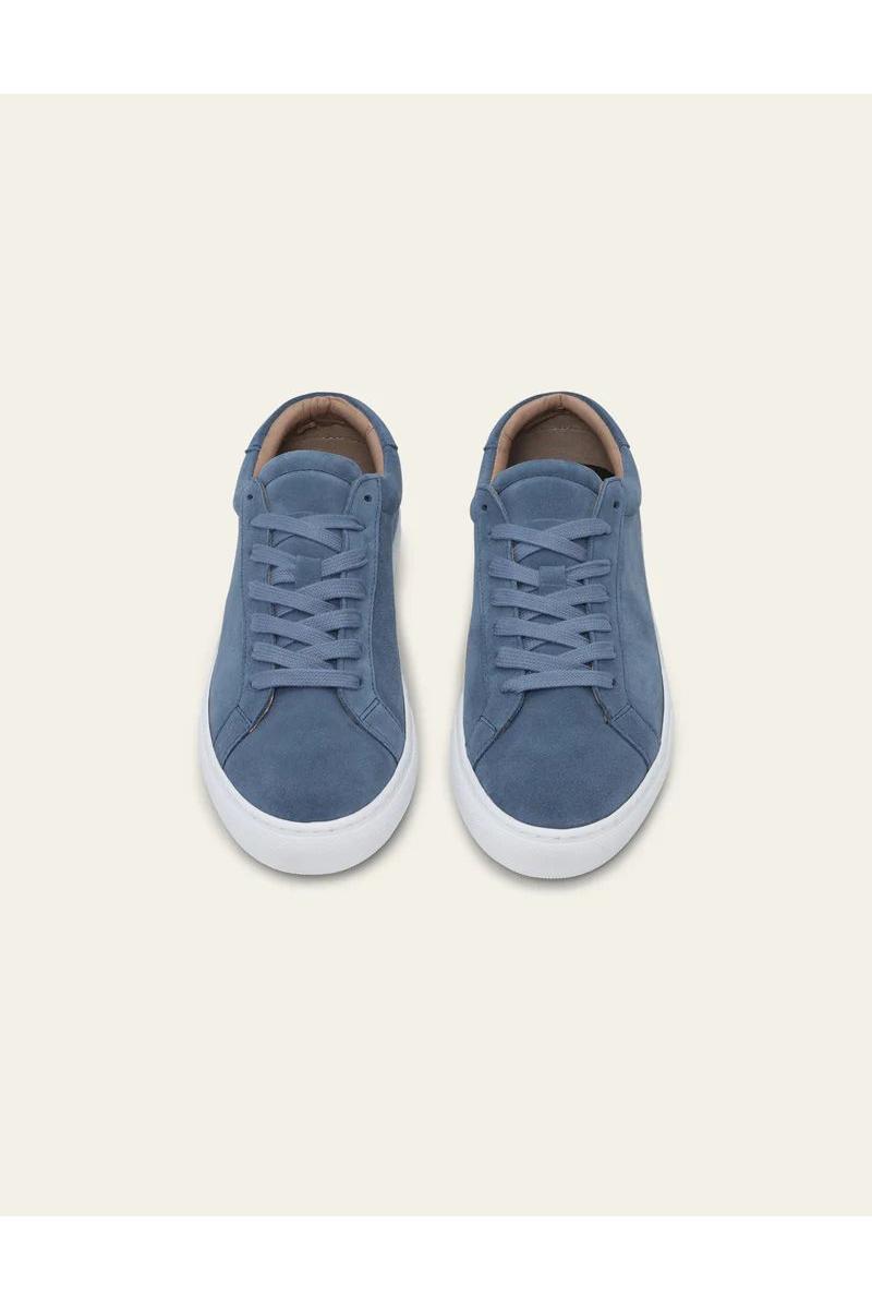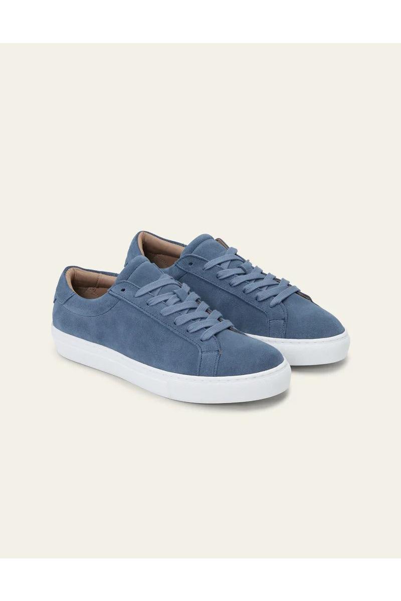 En nedtonet sneaker i mykt ku-semsket skinn. Tonale lisser gir et raffinert preg, mens kontrastgummisålen gir et skarpt løft.