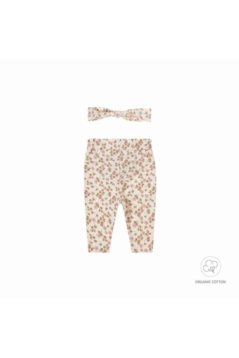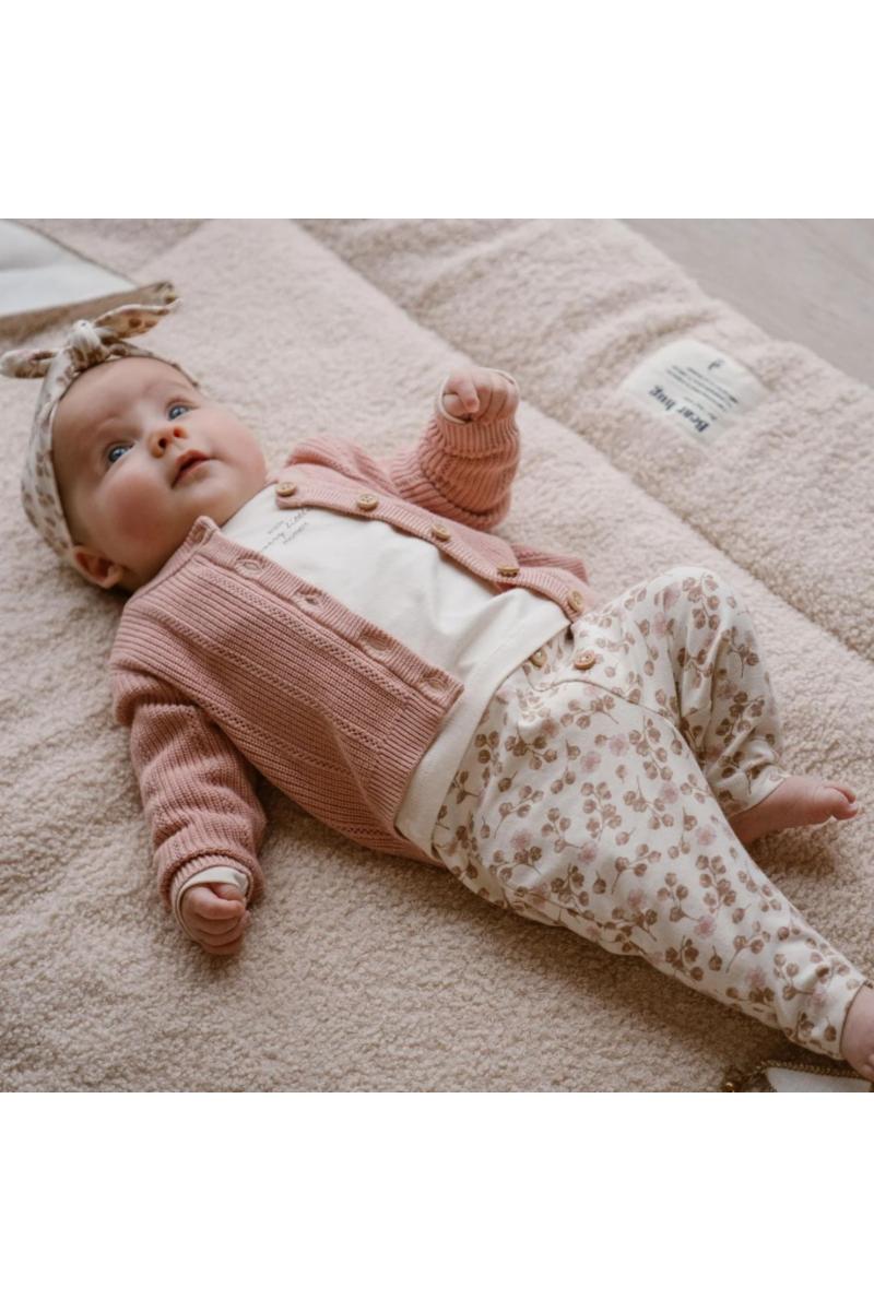 Skravling og små tær, ren babylykke. Kle din lille i disse søte buksene med hårbånd fra Dirkje. Buksene er laget av myk økologisk bomull med stretch, ekstra komfortable for din lille jente. Buksene er off-white og har et print med søte små blomster i brune og rosa nyanser. De ecrufargede jentebuksene har en fin elastisk midje og knapper foran. Fullfør antrekket til din lille med hårbåndet med sløyfe. Babyklær av økologisk bomull er det ideelle valget for foreldre som vil det beste for sine babyer. Laget av økologisk dyrket bomull, er disse klærne myke, komfortable og trygge for babyers sensitive hud. I tillegg bidrar de til en sunnere planet gjennom bærekraftige og miljøvennlige produksjonsmetoder. Velg økologisk bomull for å skjemme bort babyen din og beskytte verden.