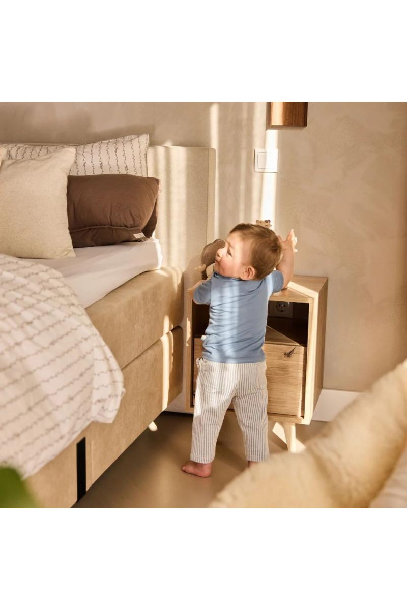 En frisk basis for vår og sommer, disse Dirkje-buksene i blått og hvitt er perfekte. Det stripete mønsteret gir et stilig utseende, og seersucker-stoffet er luftig og behagelig, mens snor i midjen gir en komfortabel passform. Disse guttebuksene er perfekte til hverdagsbruk.