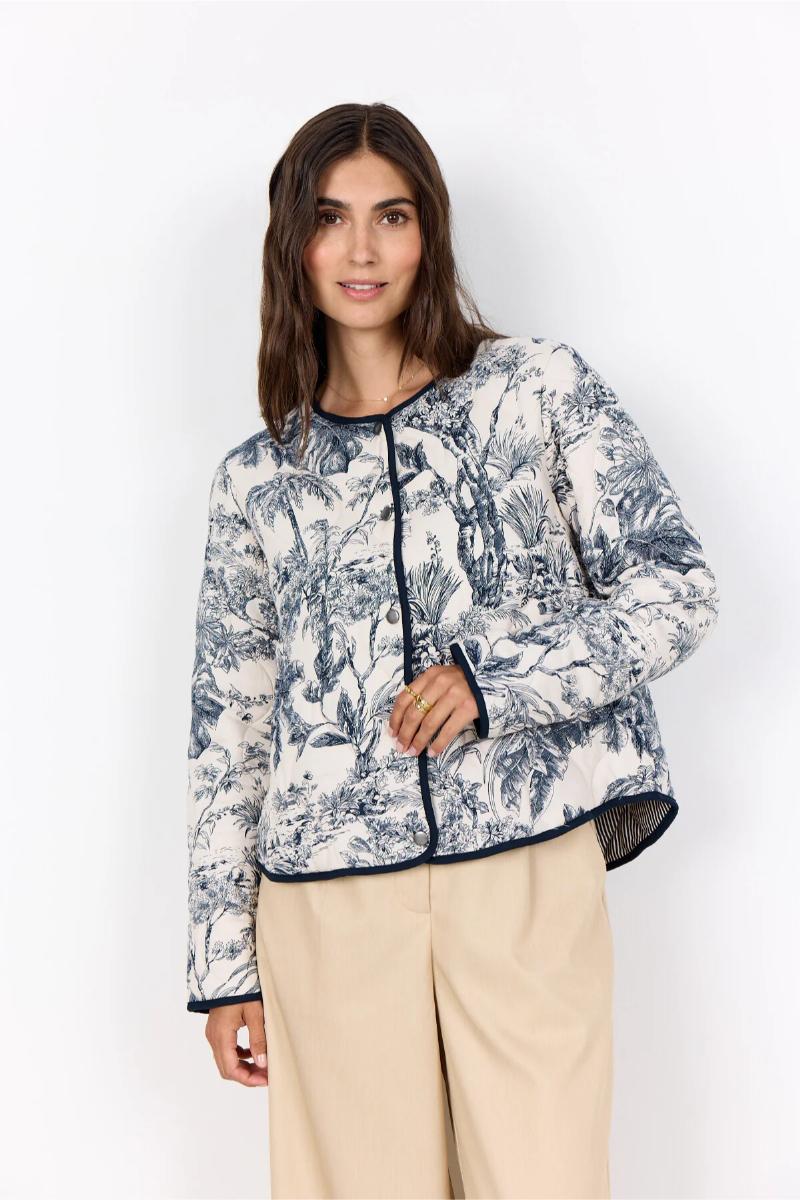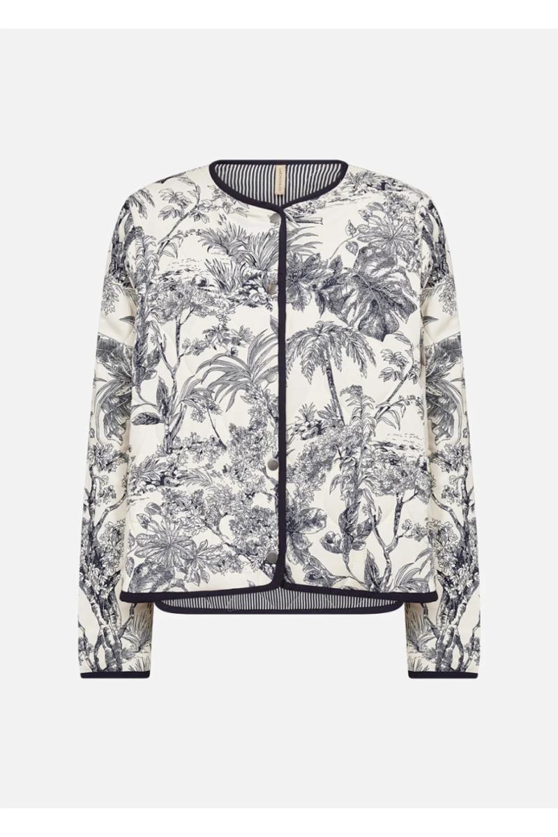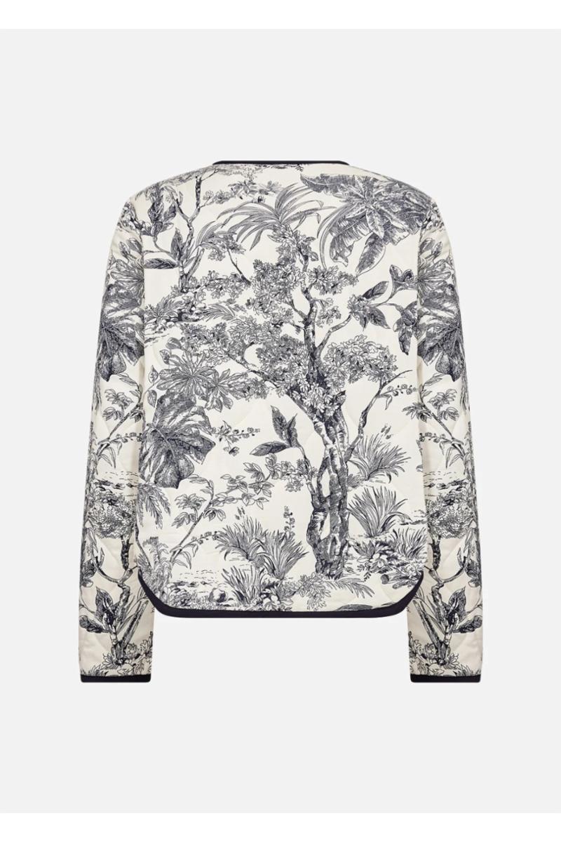 SC-CARLI 3 er en vakkert mønstret jakke laget av 100 % LENZING™ ECOVERO™-viskose. Den har rund hals, knapper foran og et iøynefallende botanisk print med quiltet tekstur og stripete kant. Kombiner den med mørke jeans for et elegant utseende eller med et enkelt skjørt for en unik vri.