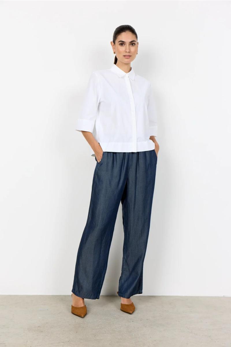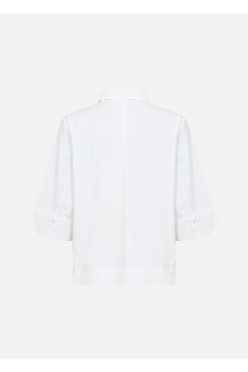SC-NETTI 118 Skjorte er laget av 53 % resirkulert polyester og 47 % økologisk bomull. Skjorten har en klassisk krage, skjulte knapper og en rett kant samt korte, brede ermer. Kombiner den med skreddersydde bukser eller et avslappet skjørt for en elegant stil.