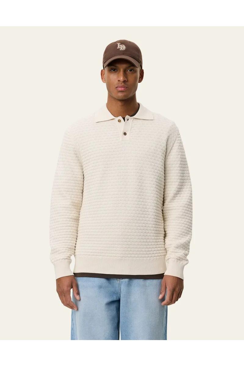 En teksturert langermet polo laget i strikket vevstruktur. Billy har ribbet krage, ren knappeliste og ribbestrikkede mansjetter for et raffinert hverdagsuttrykk.