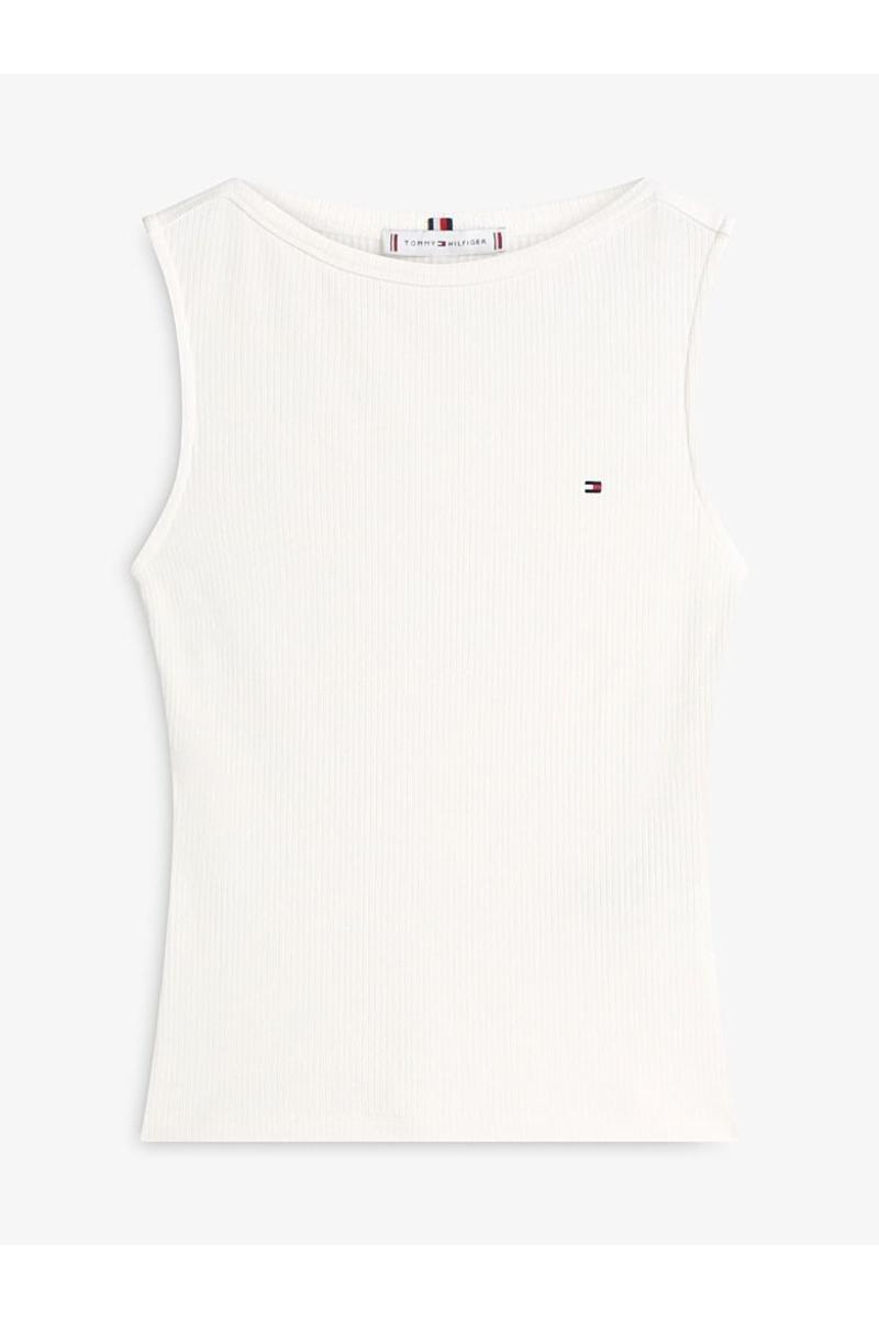Den flatterende båthalsen og den slanke passformen på denne ribbestrikkede tank-toppen gjør den til en sofistikert vri på en hverdagslig lagdelingsfavoritt.