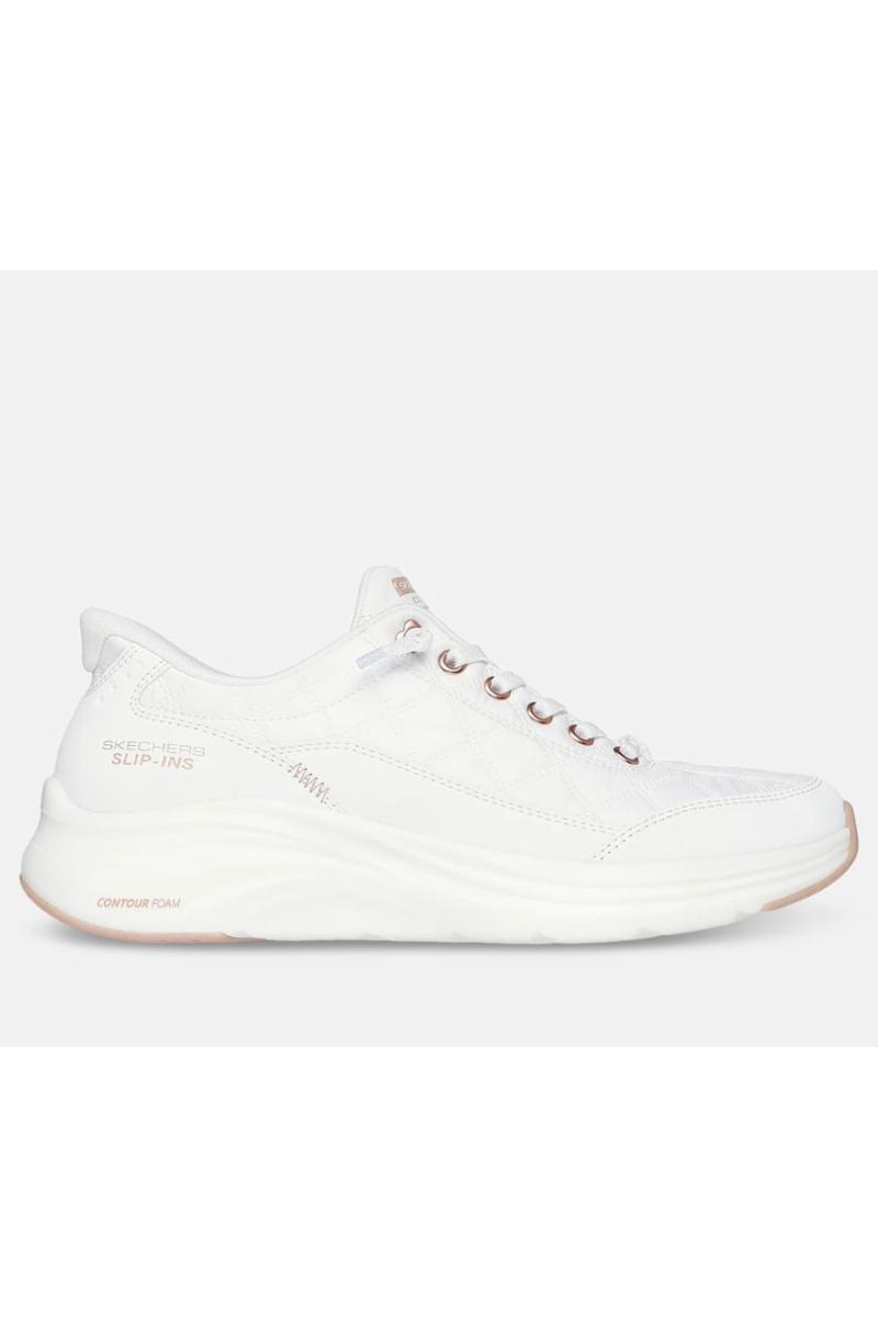 Trå inn i myk luksus og koselig komfort med Skechers Hands Free Slip-ins®: Contour Foam™ - Cozy Fit™ Golden Hour. Denne skoen er designet med vår Heel Pillow™ og har en vattert Cozy Fit™ og duralær-overdel med faste elastiske lisser, Contour Foam™ demping i mellomsålen og vår signatur Skechers Air-Cooled Memory Foam® komfortinnersåle.
